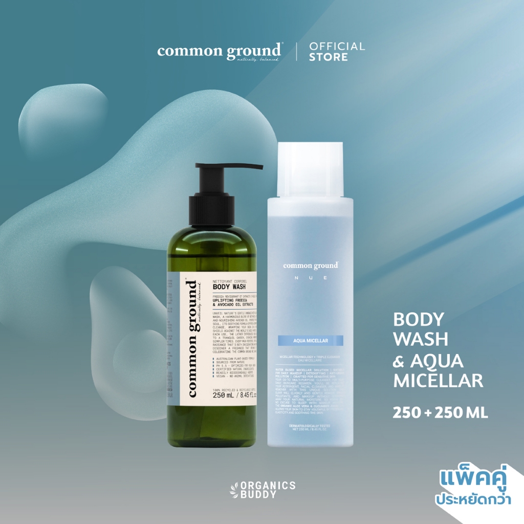 [แพ็คคู่] Common Ground Body Wash 250ml / 500ml + NUE Aqua Micellar + Triple Cleanser 250ml
