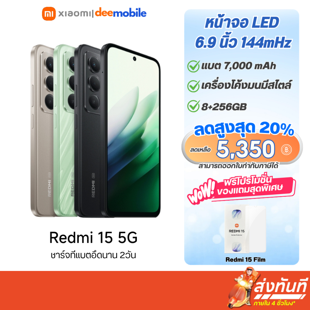 Xiaomi Redmi 15 4G/5G เครื่องศูนย์ไทย รับประกัน 15 เดือน