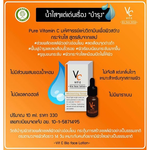 VC VitC BioFaceSerum เซรั่มวิตซี เซรั่มวิตามินซี บำรุง เติมเต็มริ้วรอย ขนาด10 ML