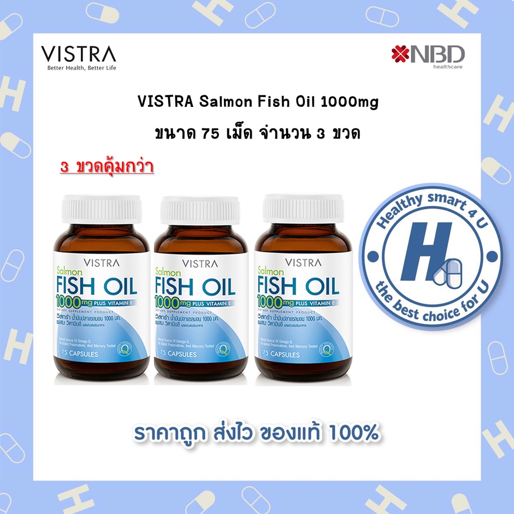🔥🔥(ของแท้ร้านยา)🔥🔥Vistra Salmon Fish Oil 1000 mg (75 Caps* 3 ขวด)