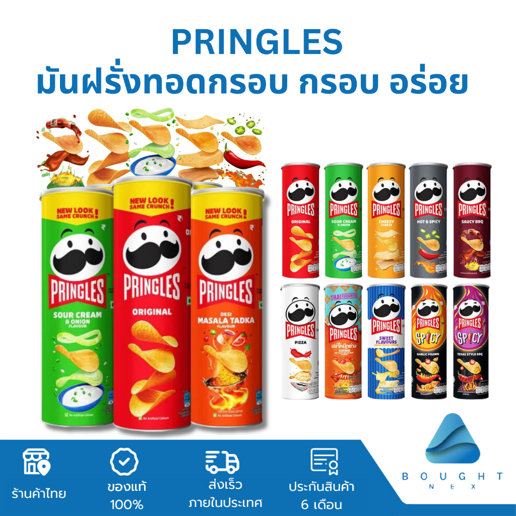 Pringles Potato Crisps พริงเกิลส์ มันฝรั่งทอดกรอบ 97g-107g มันฝรั่งแผ่นเรียบ ขนม เลือกได้ 11 รสชาติ ฮาลาล