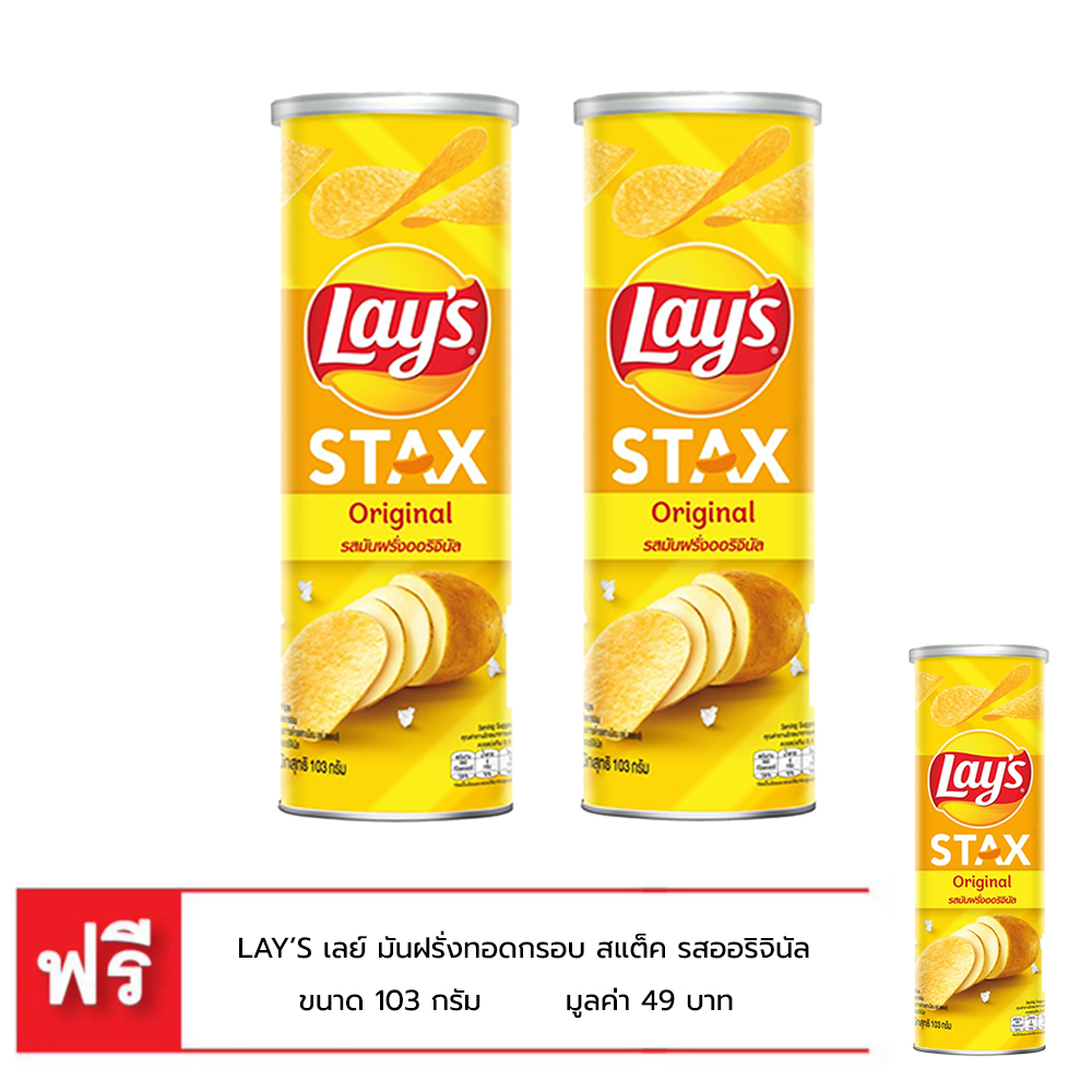 [ซื้อ 2 แถม 1] เลย์ มันฝรั่งทอดกรอบ สแต็ค รสออริจินัล ขนาด 103 กรัม LAYS STAX ORIGINAL 100 G.