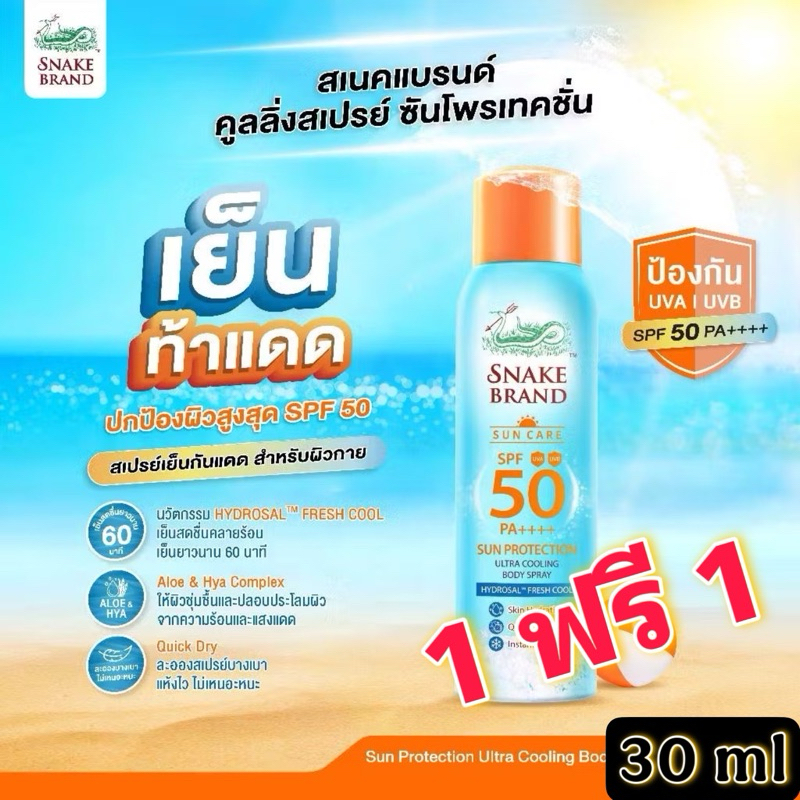 ซื้อ 1 แถม 1 สเปรย์ตรางู สูตรเย็น 50 มล.snake brand เย็นสุดขั้ว ฉีดแล้วเย็นทันที!!!