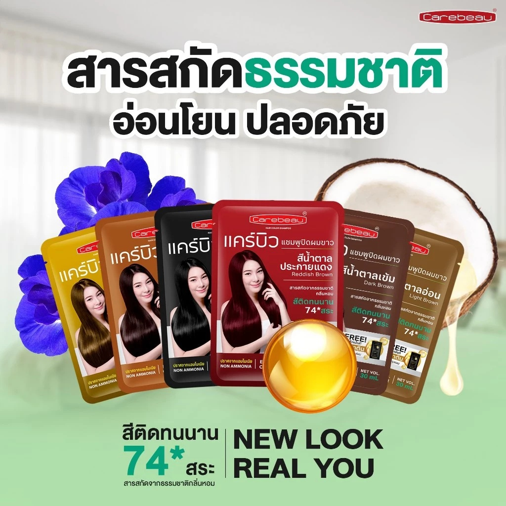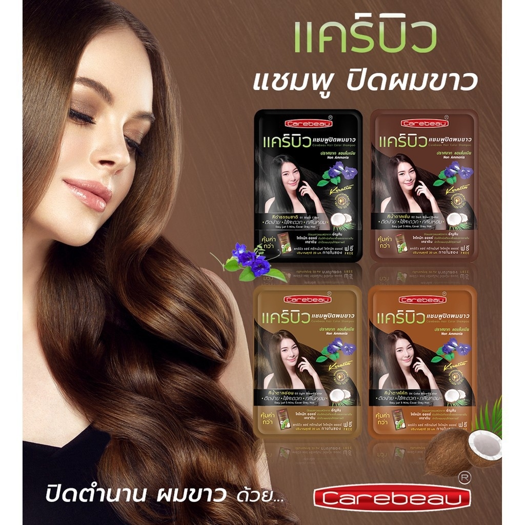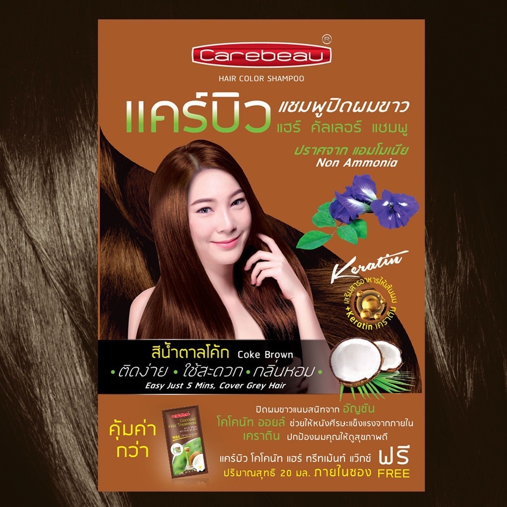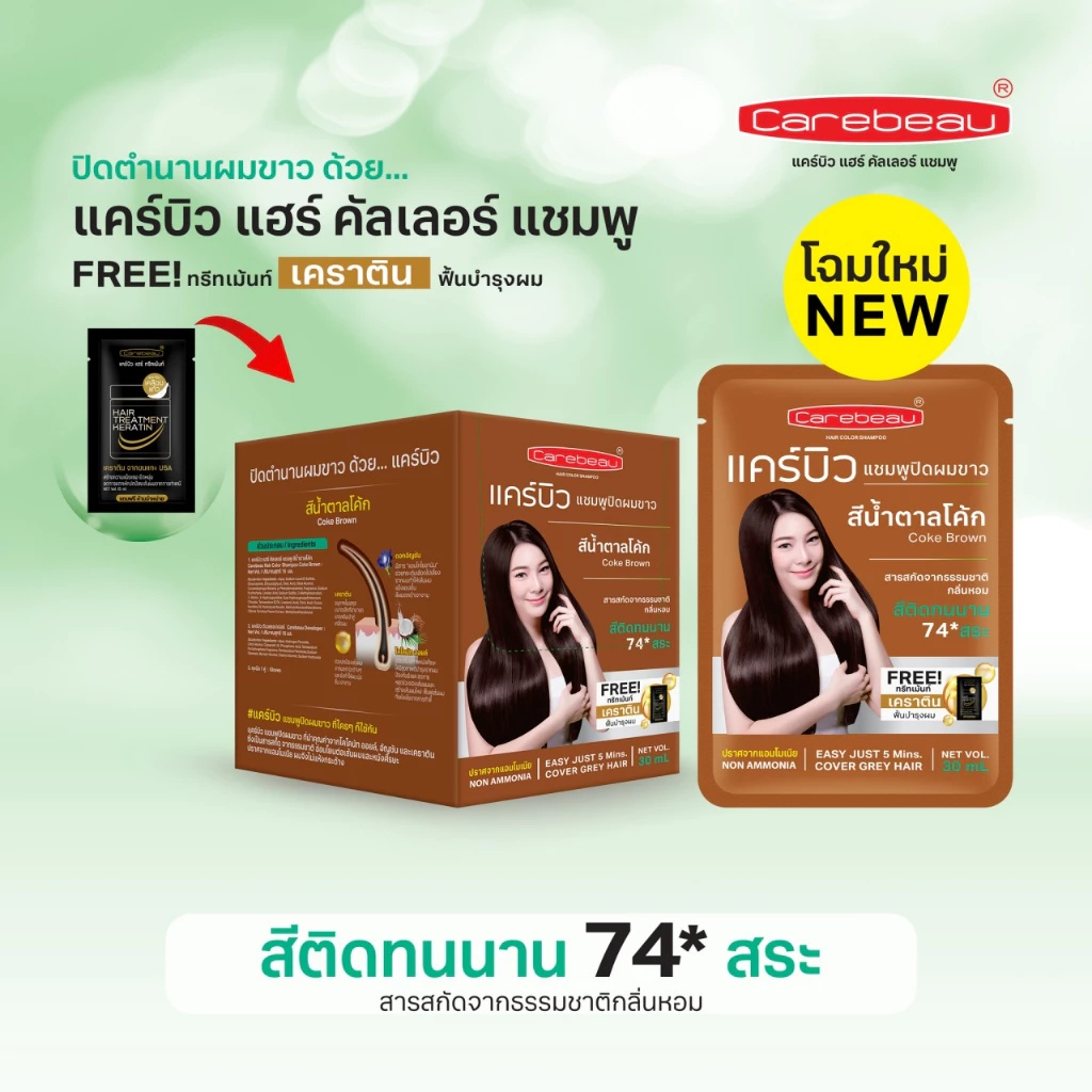 (กล่อง 12 ซอง) CAREBEAU (สีน้ำตาลโค้ก) แคร์บิว แฮร์ คัลเลอร์ แชมพูปิดผมขาว (30 ml.)