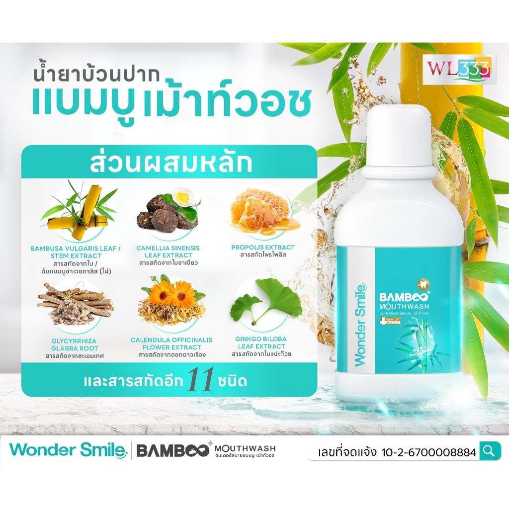 Wonder Smile Bamboo Mouthwash วันเดอร์ สไมล์ แบมบู น้ำยา บ้วนปาก กลิ่นหอม สดชื่น อ่อนโยน ช่องปาก 300ml