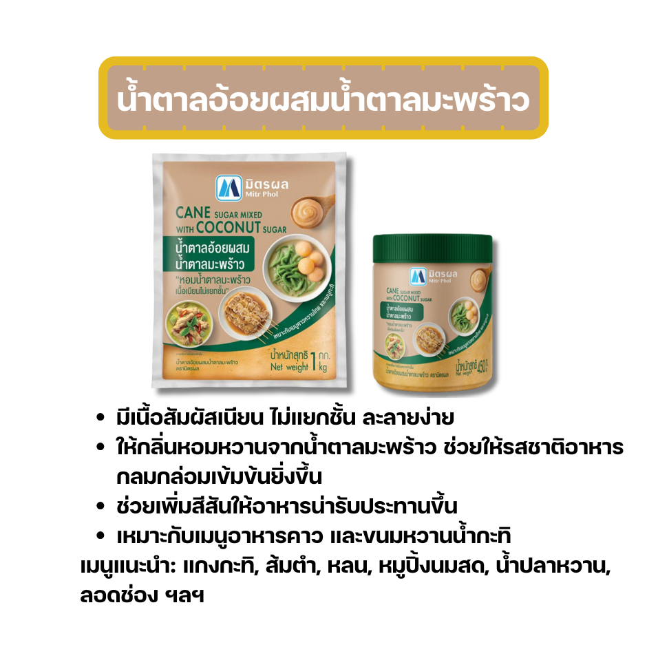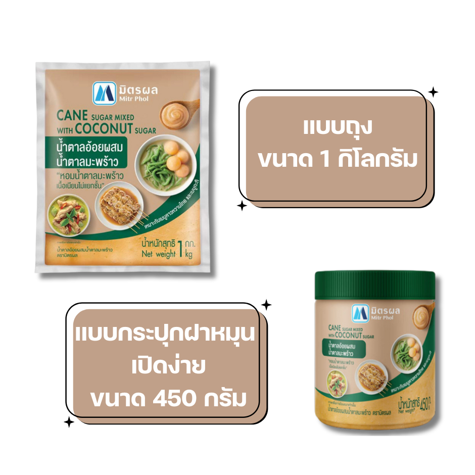 มิตรผล น้ำตาลปิ๊ป ทำจากน้ำตาลอ้อยผสมน้ำตาลมะพร้าว ขนาด 450 กรัม-1 กิโลกรัม