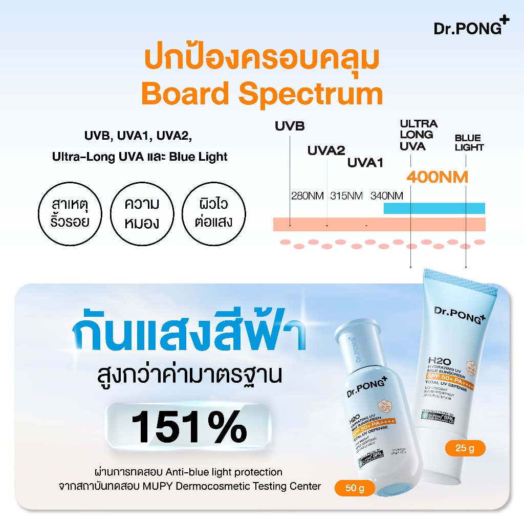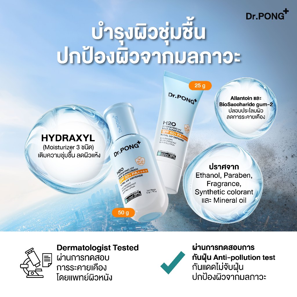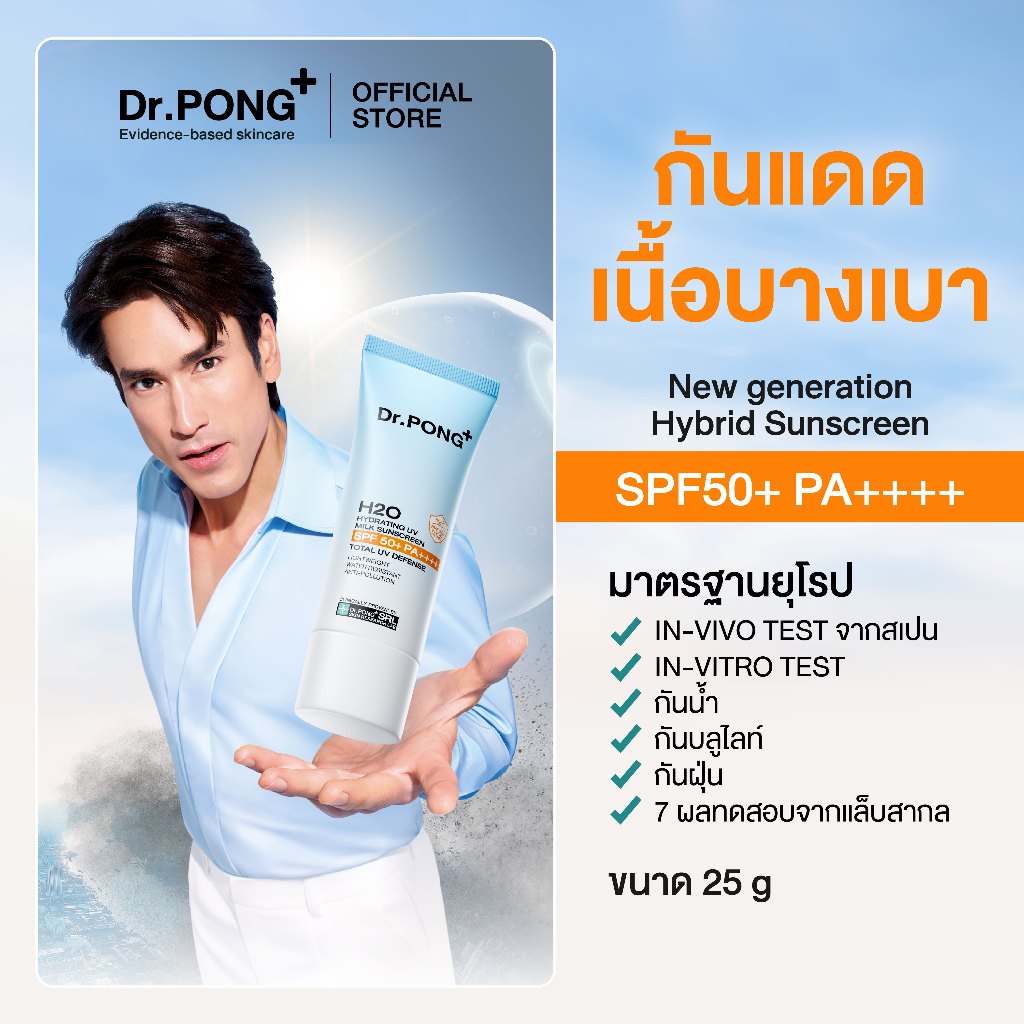 Dr.PONG H2O Hydrating UV Milk Sunscreen กันแดดน้ำนม เนื้อบางเบา กันน้ำ กันเหงื่อSPF 50+ PA++++