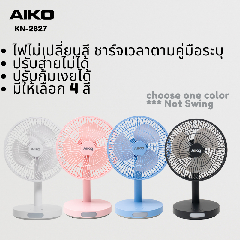 AIKO พัดลมชาร์จไฟ พร้อมโคมไฟ (ขนาดพัดลม 8.5 นิ้ว ใบพัด 7 นิ้ว) KN-2827 (คละสี)