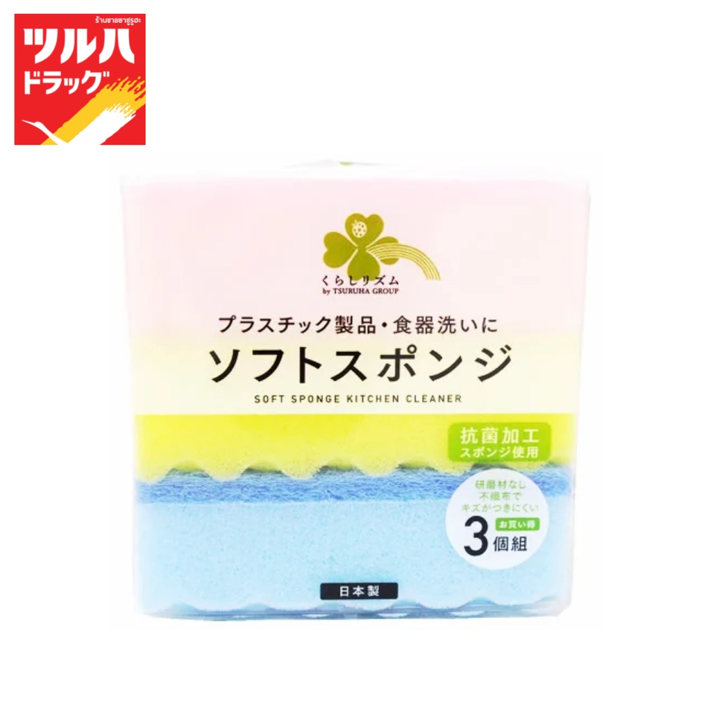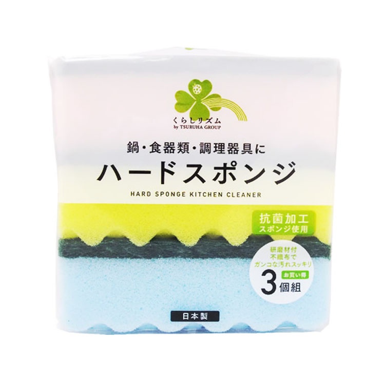 คุราชิ-ริธึ่ม ฮาร์ด สปอง คิทเช่น คลีนเนอร์ 3ชิ้น/Kurashi-Rhythm Hard Sponge Kitchen Cleaner 3P