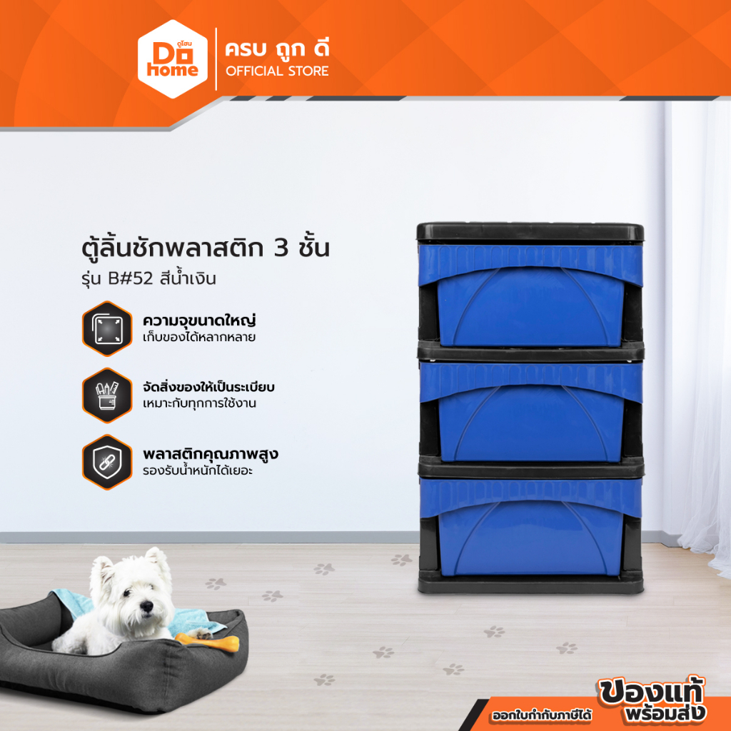 ตู้ลิ้นชักพลาสติก 3 ชั้น รุ่น B#52 สีน้ำเงิน |ZWF|