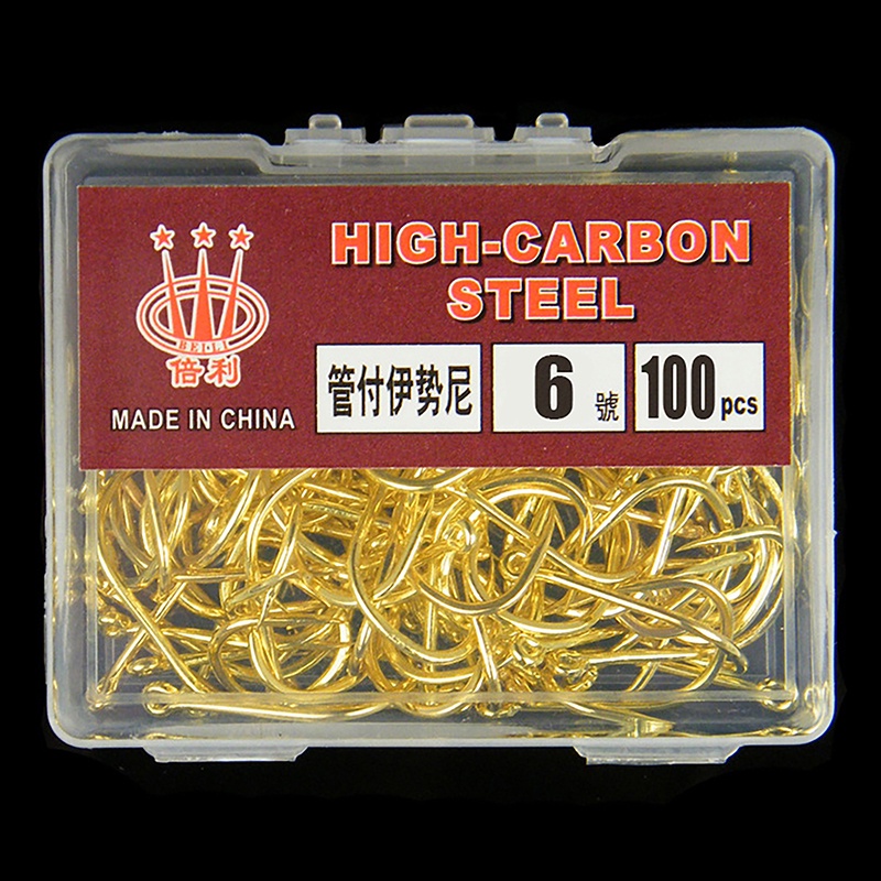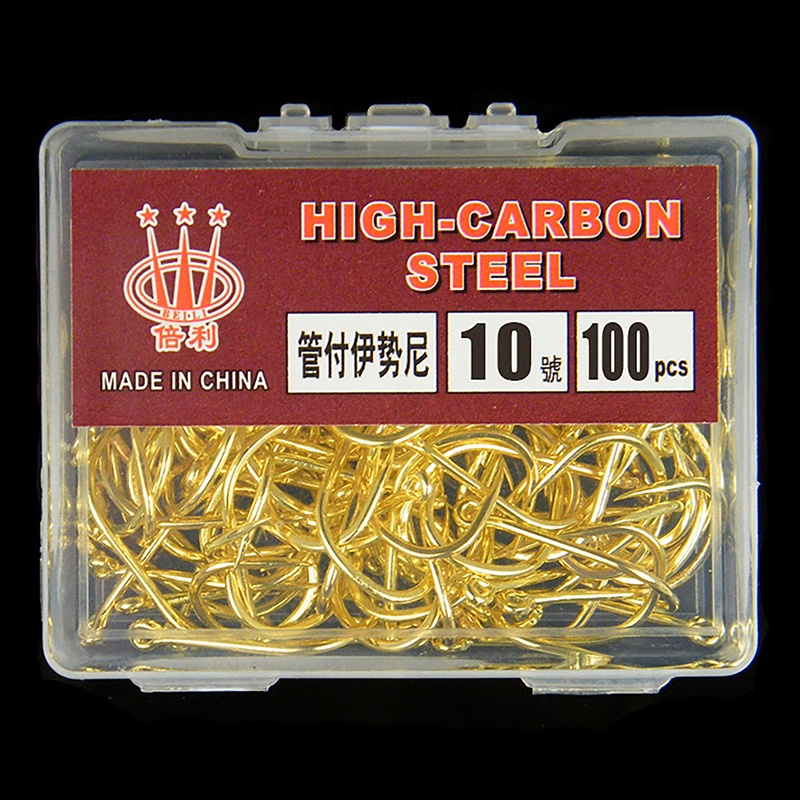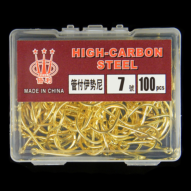Foursun ตะขอตกปลา เหล็กคาร์บอน พร้อมแหวน สีทอง 100 ชิ้น