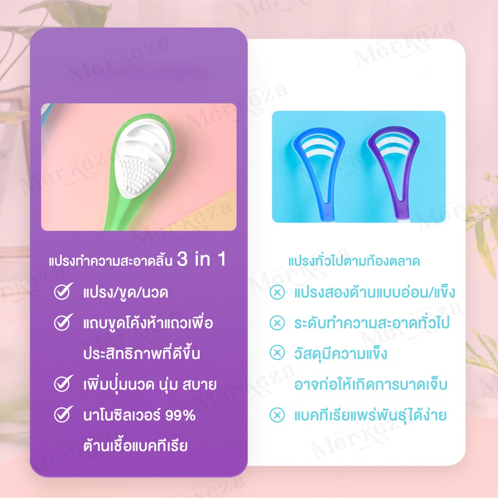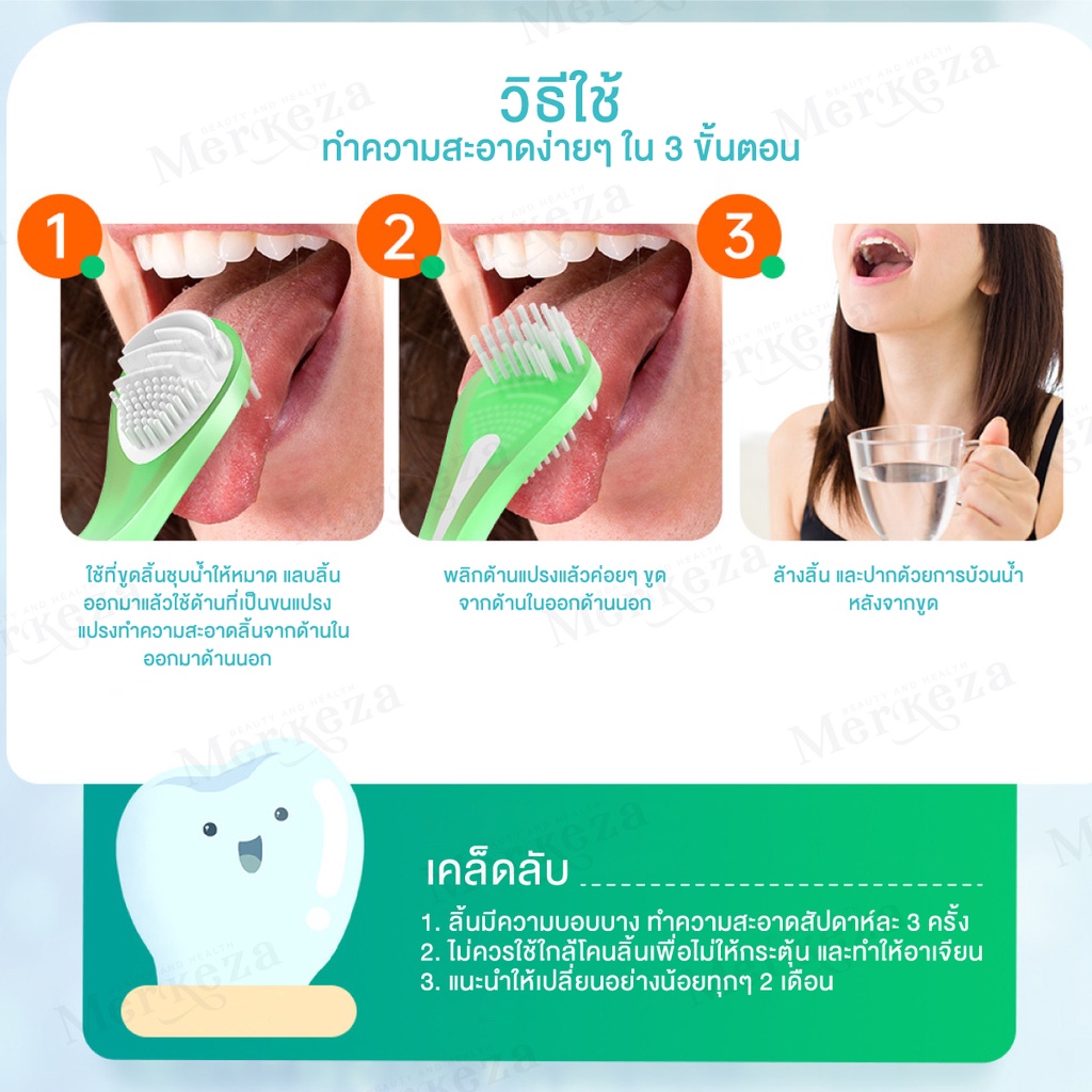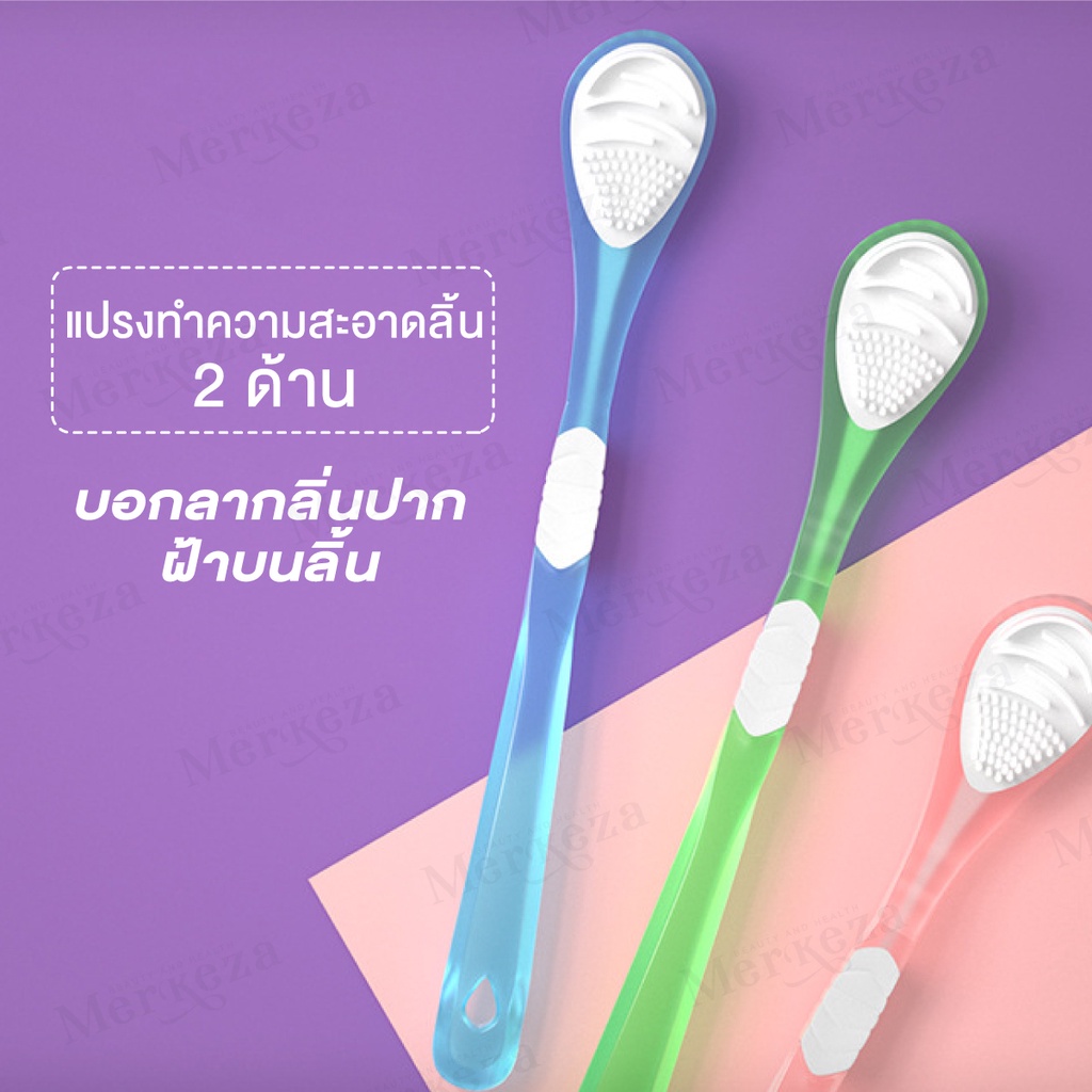 Merkeza 3in1 Tongue Cleaner แปรง ทำความสะอาดลิ้น แปรงขูดลิ้น ลดกลิ่นปาก ขจัดคราบพลัค คลีนเนอร์ มีด้ามจับ 1ชิ้น