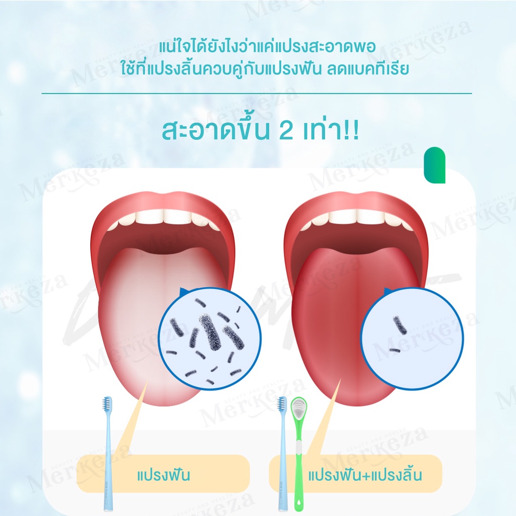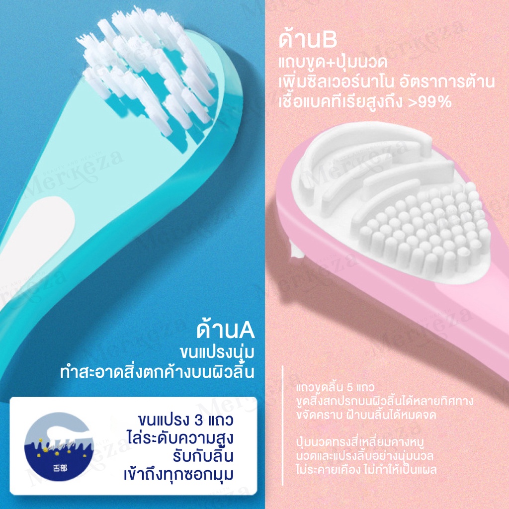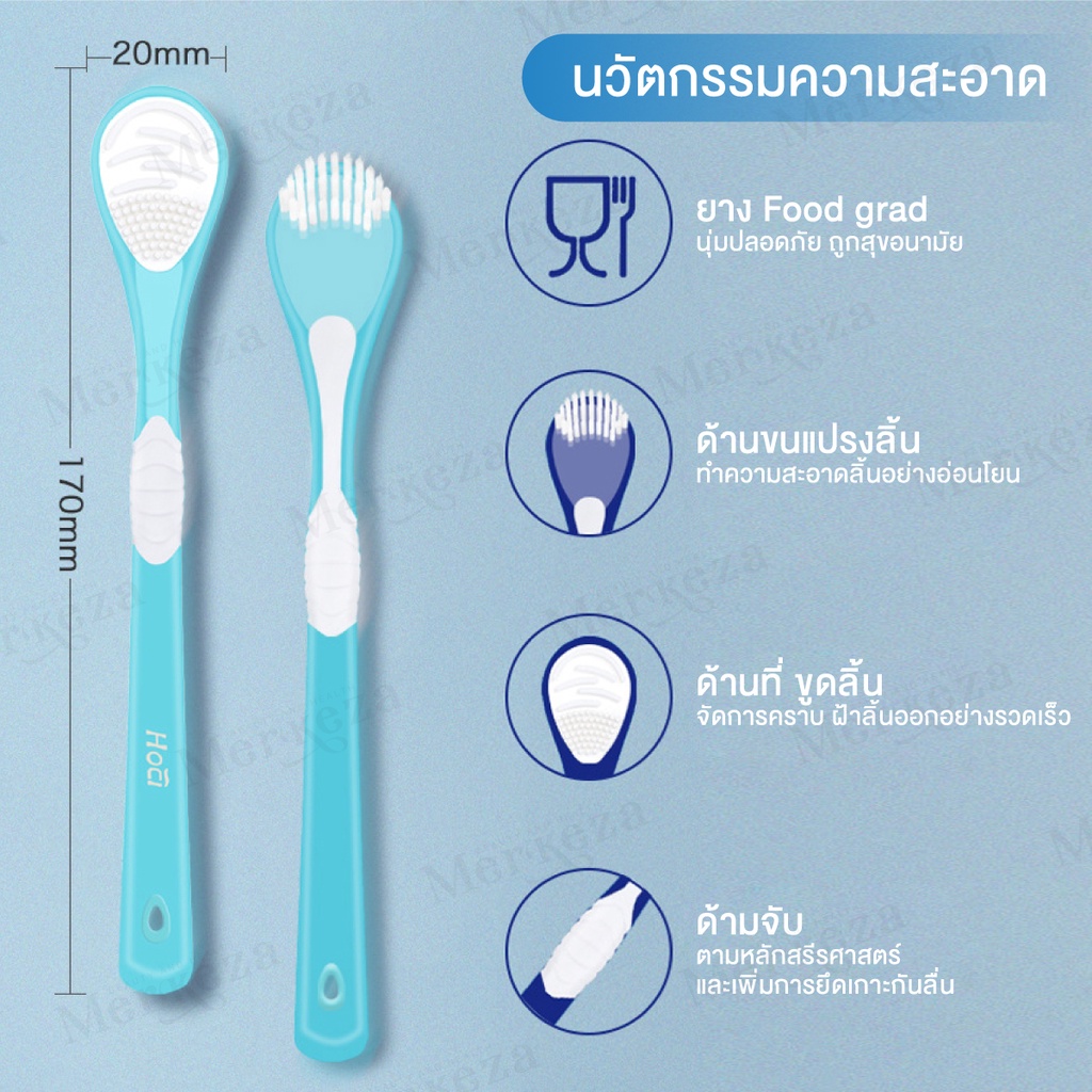Merkeza 3in1 Tongue Cleaner แปรง ทำความสะอาดลิ้น แปรงขูดลิ้น ลดกลิ่นปาก ขจัดคราบพลัค คลีนเนอร์ มีด้ามจับ 1ชิ้น