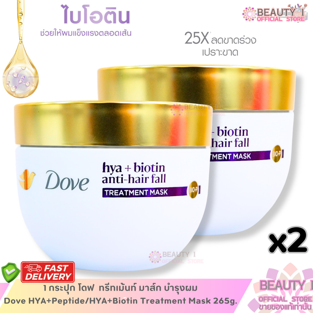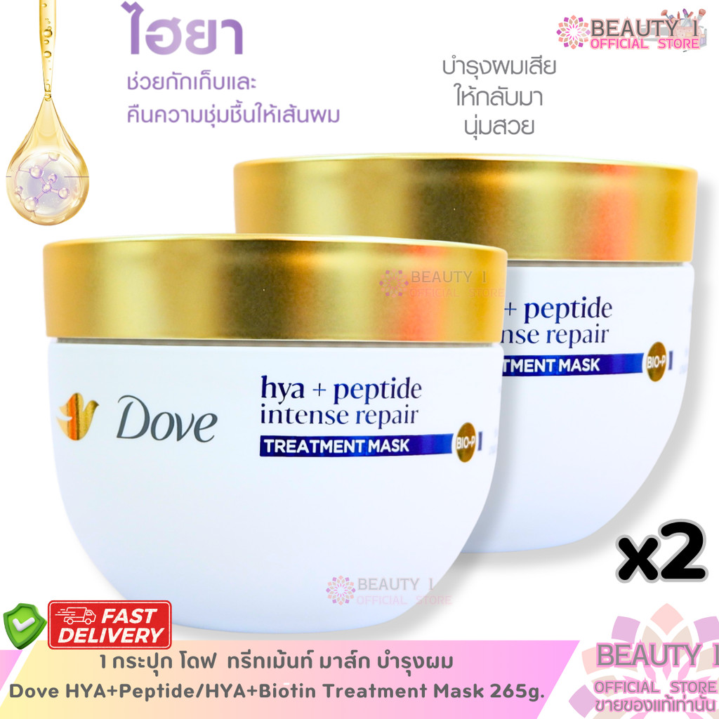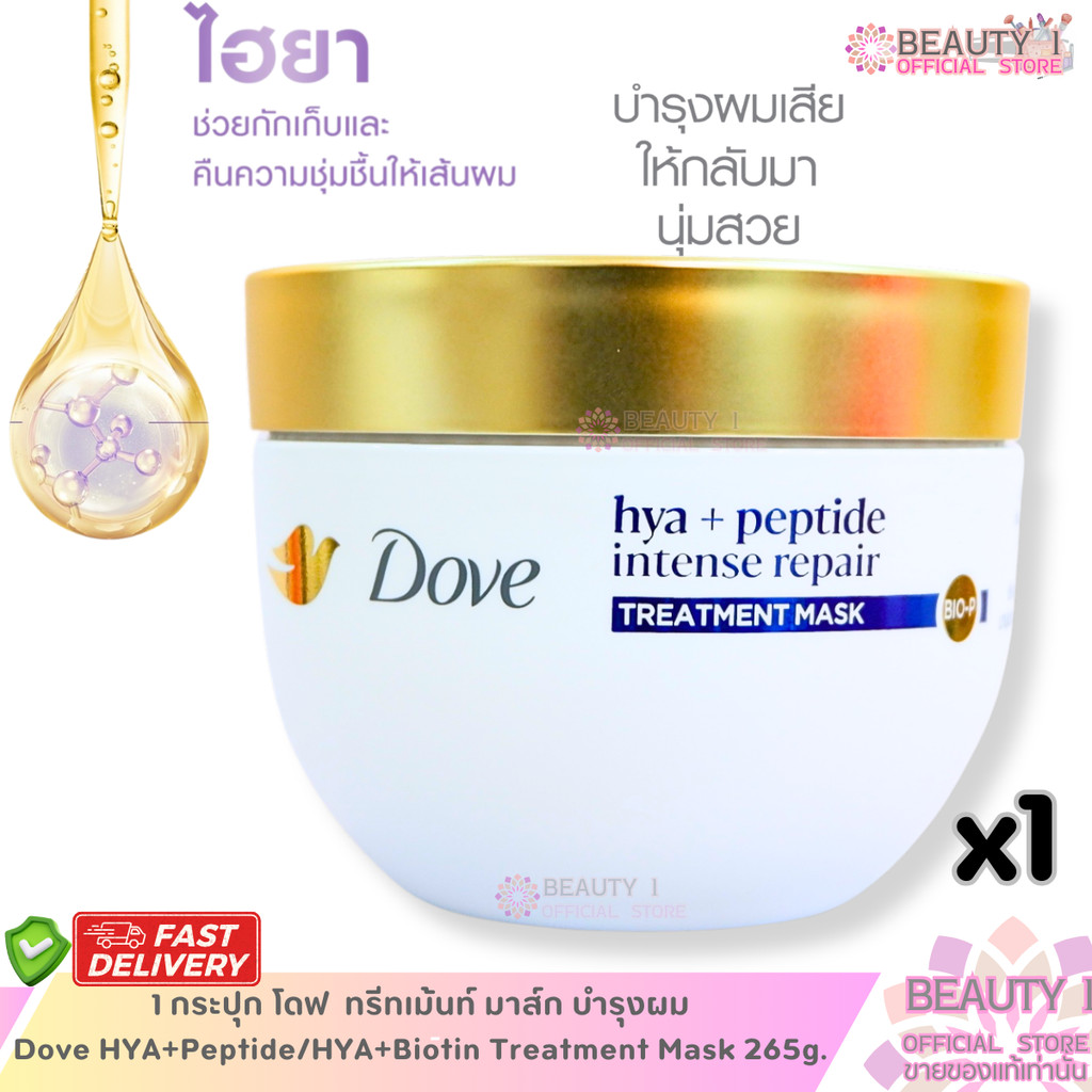 1 กระปุก โดฟ ทรีทเม้นท์ มาส์ก บำรุงผม ลดการขาด หลุดร่วง Dove HYA+Peptide/HYA+Biotin Treatment Mask 265g.