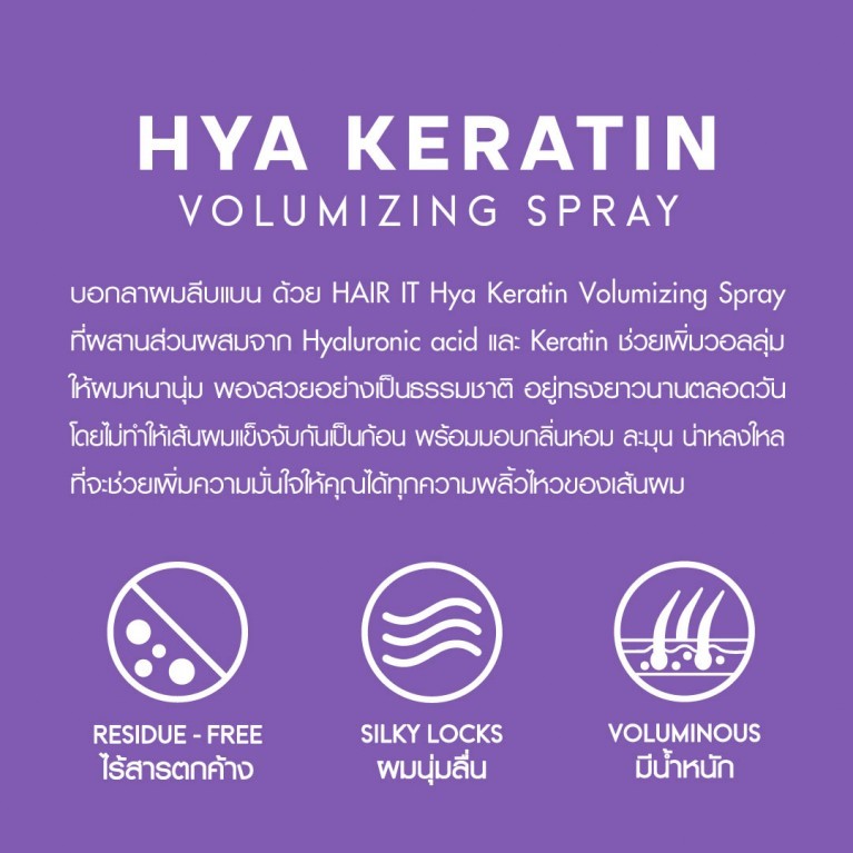 แฮร์อิท ไฮยา เคราติน วอลลุ่มไมซิ่ง สเปรย์ Hair It HYA Keratin Volumizing Spray 40g / 100g