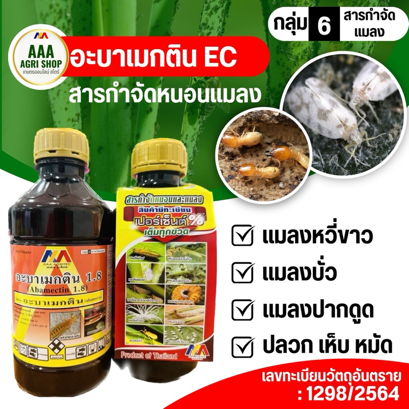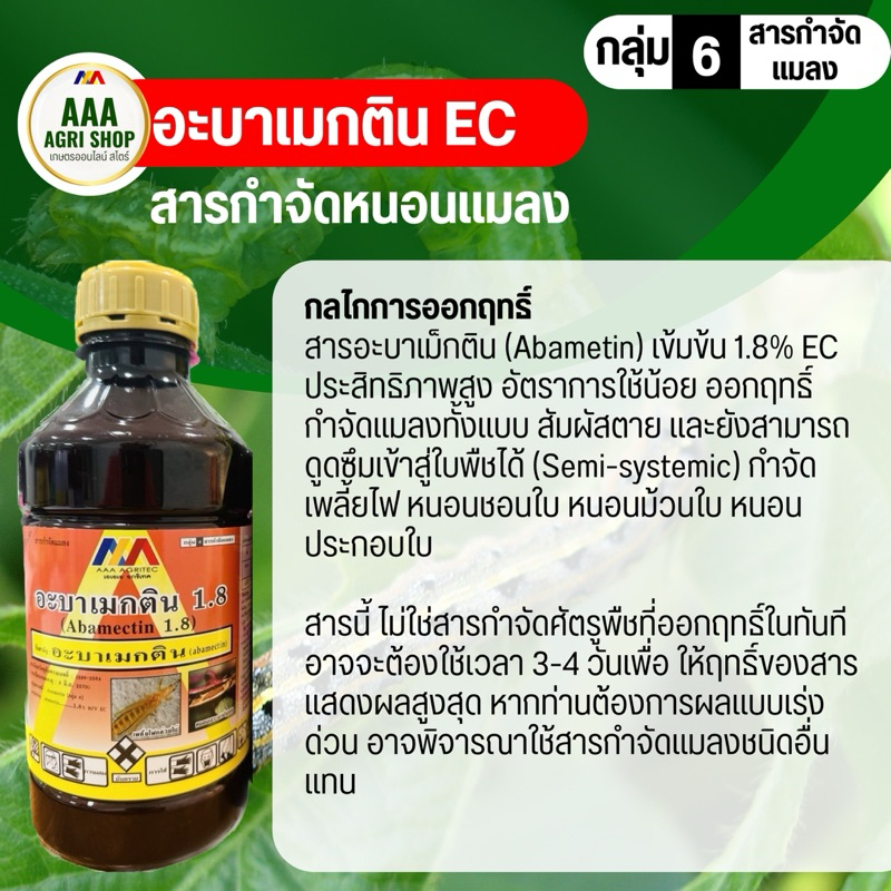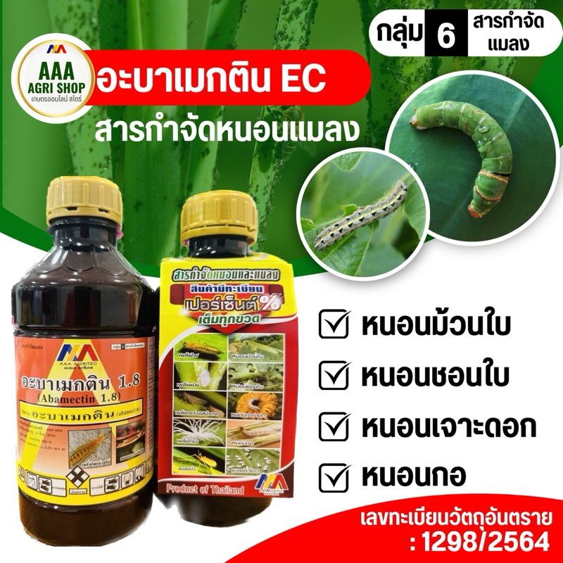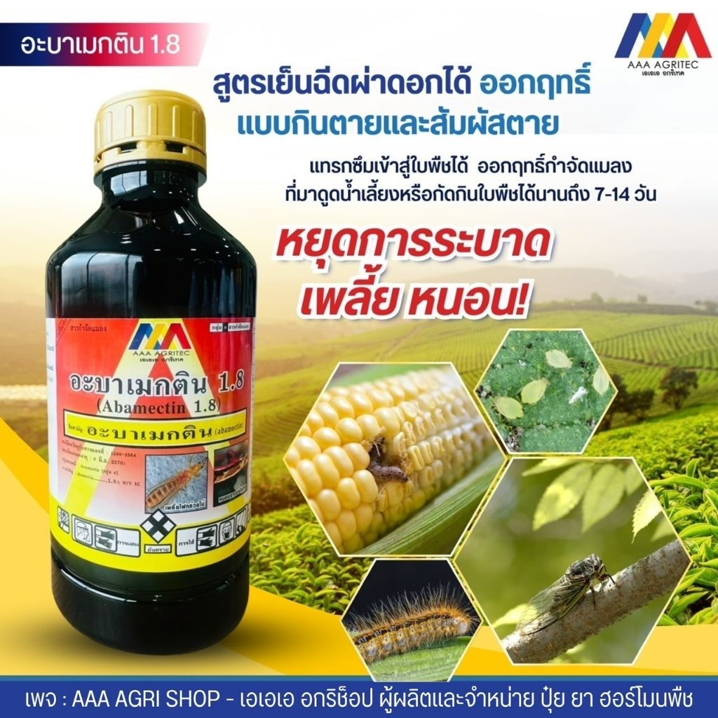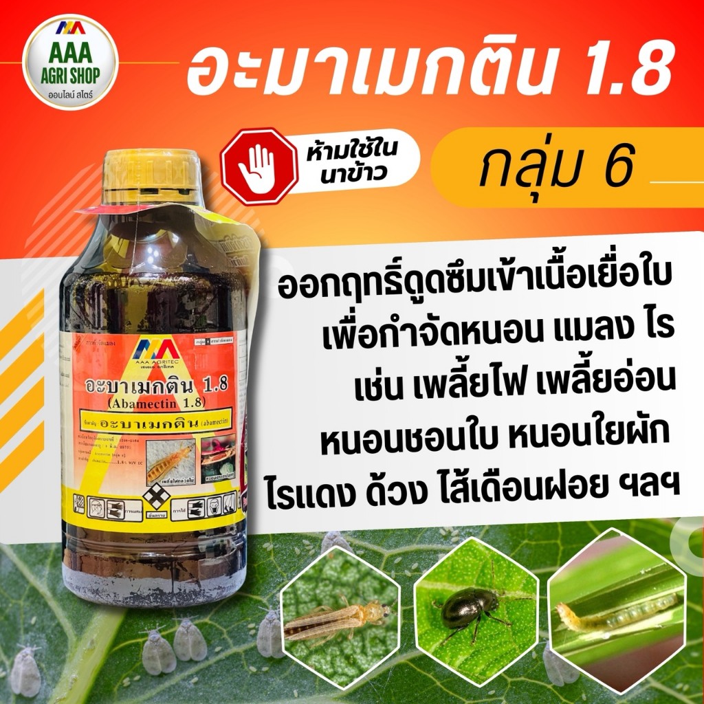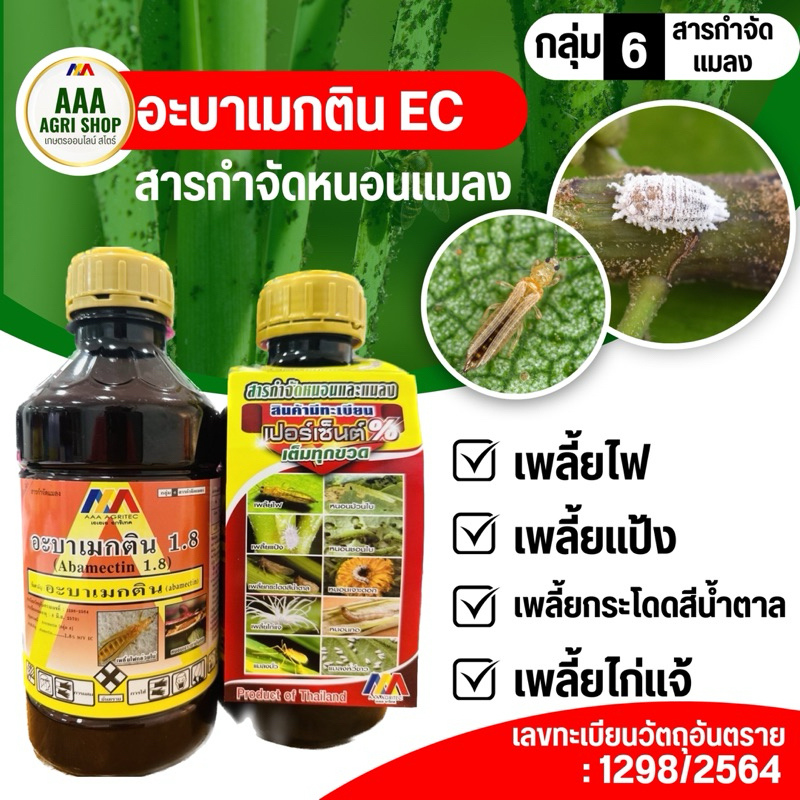 อะบาเม็กติน 1.8% ป้องกันกำจัด กำจัดเพลี้ยไฟ หนอนชอนใบ หนอนม้วนใบ หนอนประกอบใบ