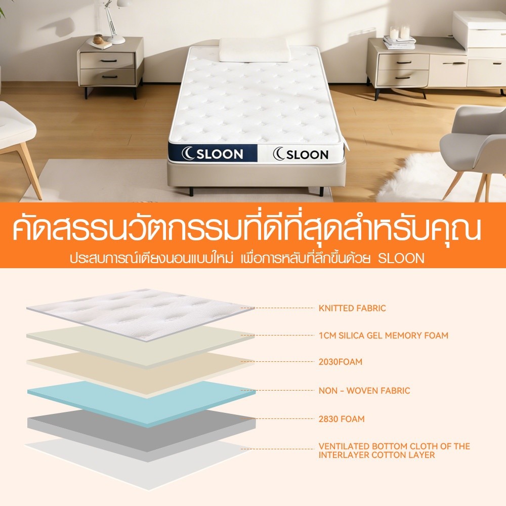 GlobalHouse SLOON ท็อปเปอร์ เมมโมรี่โฟม รุ่น Moon ความหนา 4 นิ้ว ขนาด 90x200x10 ซม. (3ฟุต) สีขาว