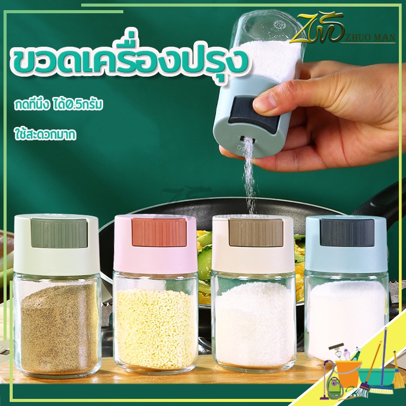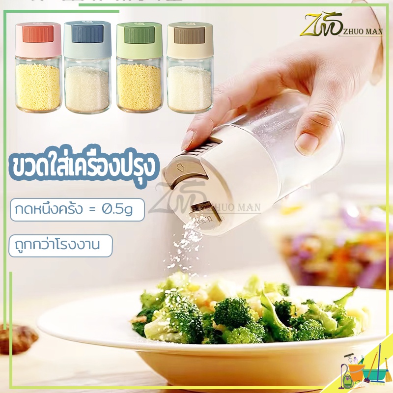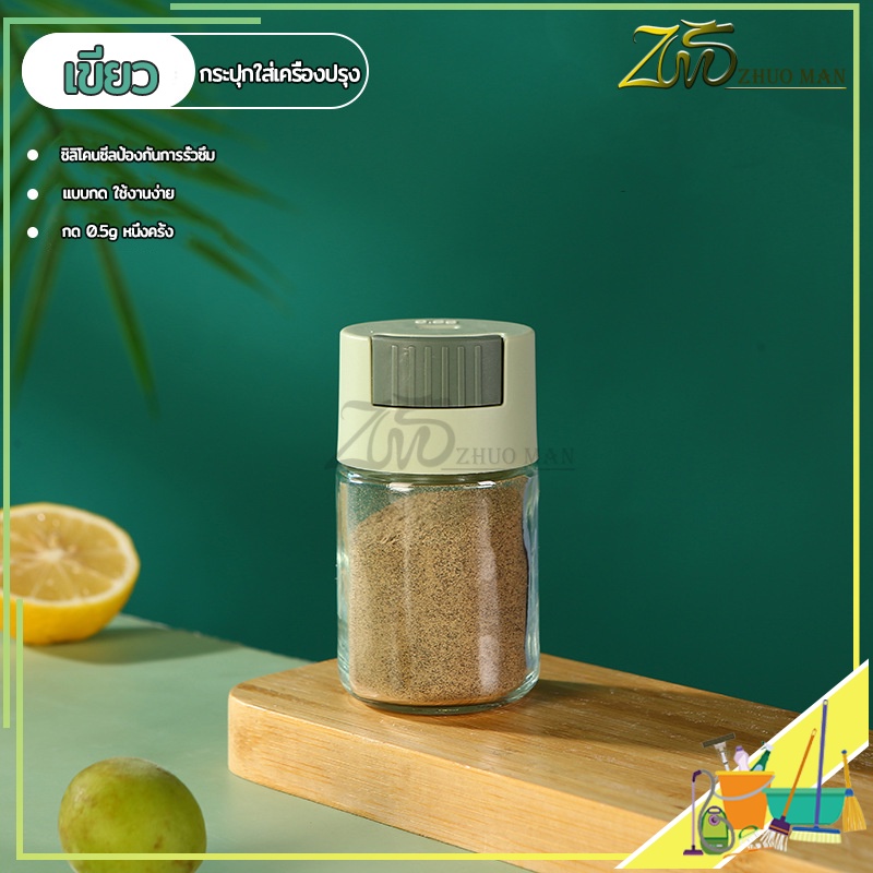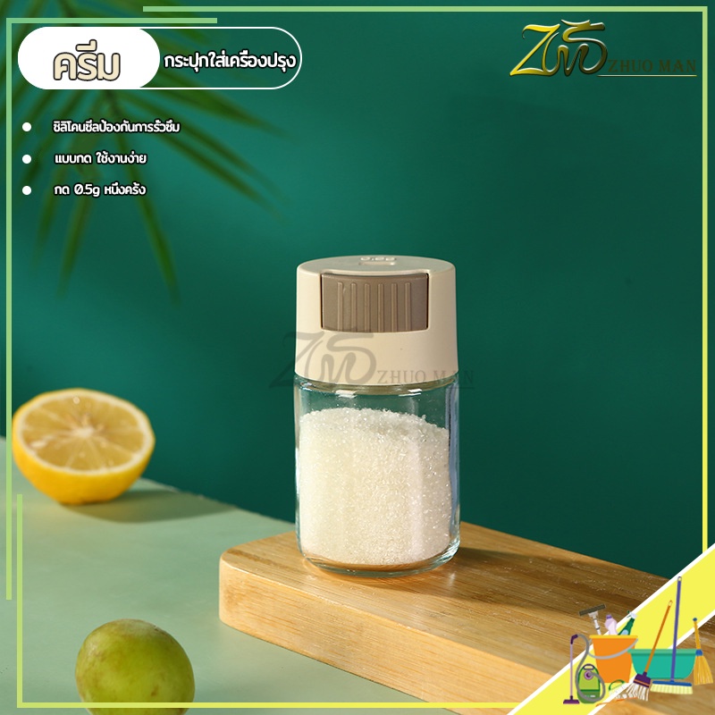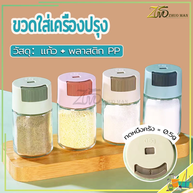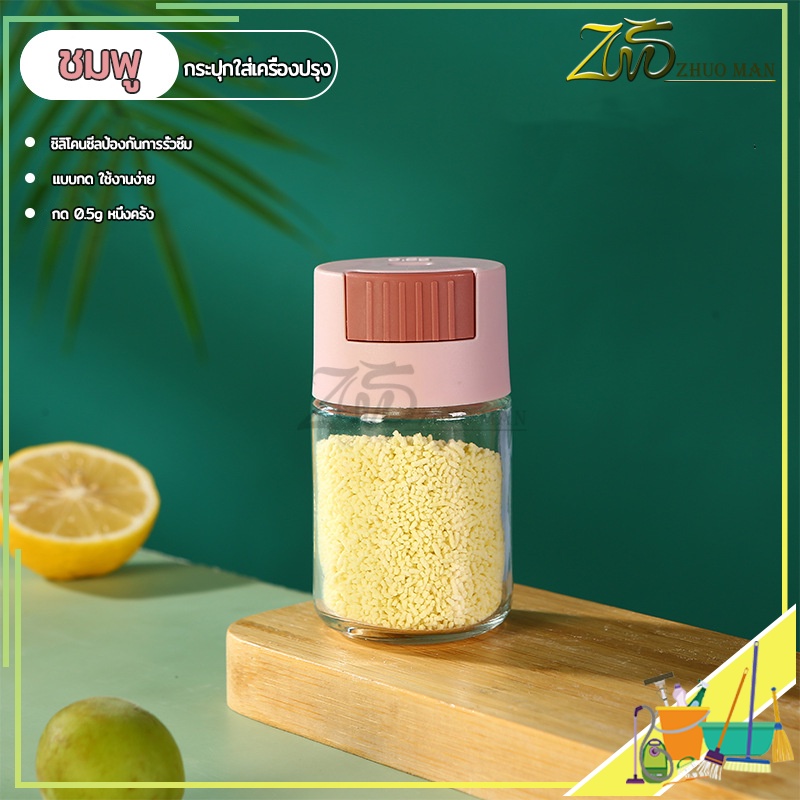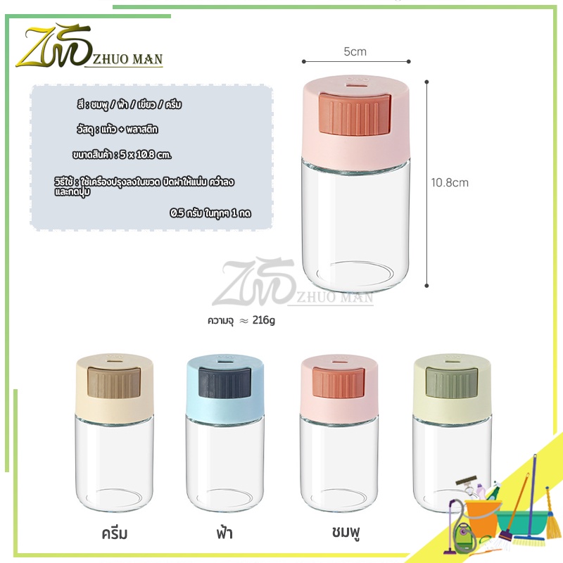 ขวดใส่เครื่องปรุง กด 0.5g หนึ่งครั้ง เครื่องครัว วัสดุเป็นแก้ว ฝาปิด ซิลิโคนซีลป้องกันการรั่วซึม 216g