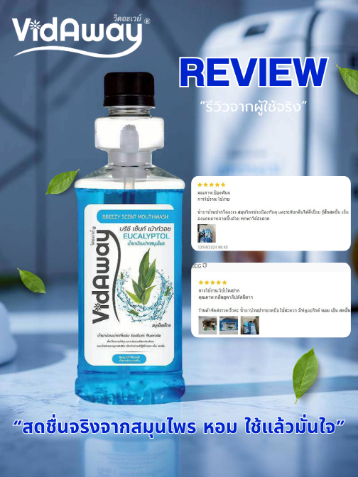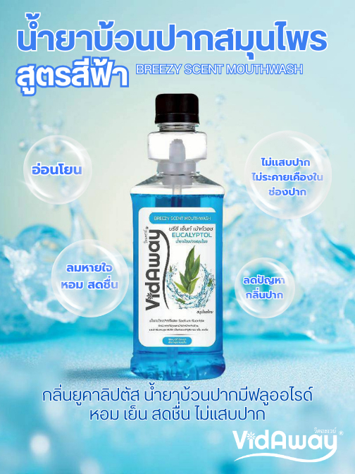 (ซื้อคู่กับขนาด 250ml.คุ้มกว่า) Breezy Scent Mouthwash 500ml น้ำยาบ้วนปากยูคาลิปตัส เย็นสดชื่น ลดกลิ่นปาก ป้องกันฟันผุ