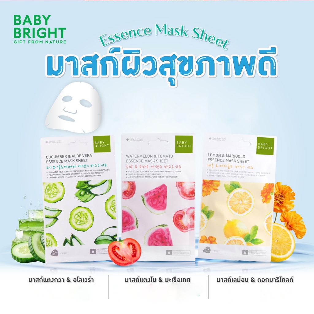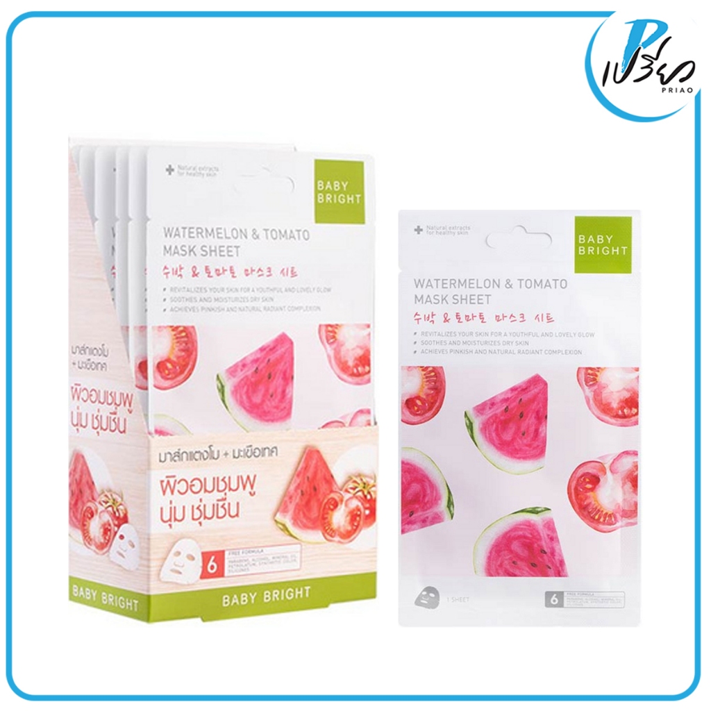 BABY BRIGHT เบบี้ ไบร์ท วอเตอร์เมล่อน แอนด์ โทเมโท เอสเซนต์ มาส์ก ชีท 20 กรัม.(1 กล่อง 6 ซอง)