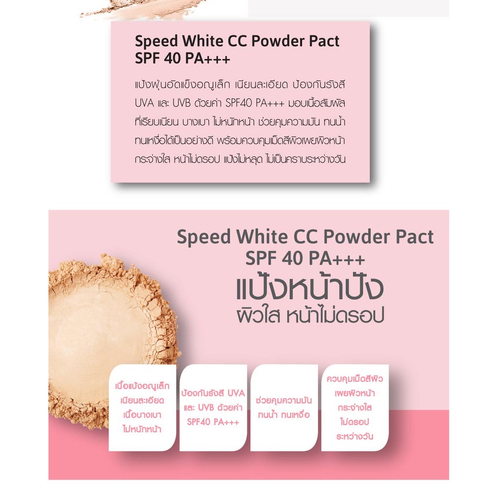 ตลับใหญ่ แป้ง Cathy Doll Speed White CC Powder Pact SPF40 PA+++ 12g แ ป้ง cc