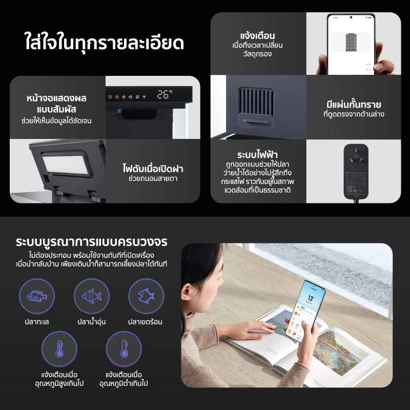 Xiaomi ตู้ปลาอัจฉริยะ Mijia Smart Fish Tank ตู้ปลาอัจฉริยะพร้อมไส้กรอง เชื่อมต่อและควบคุมผ่านแอพได้ มีเครื่องให้อาหารในต
