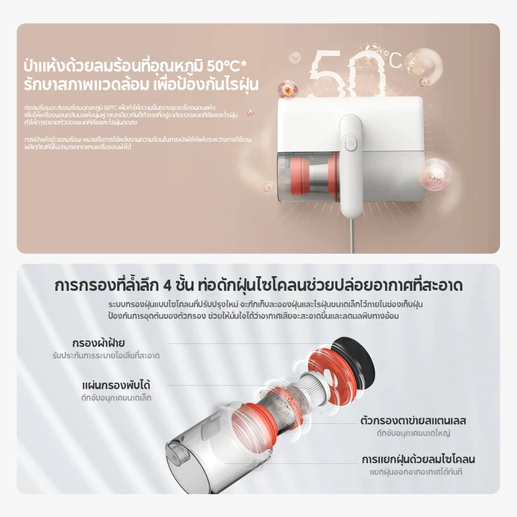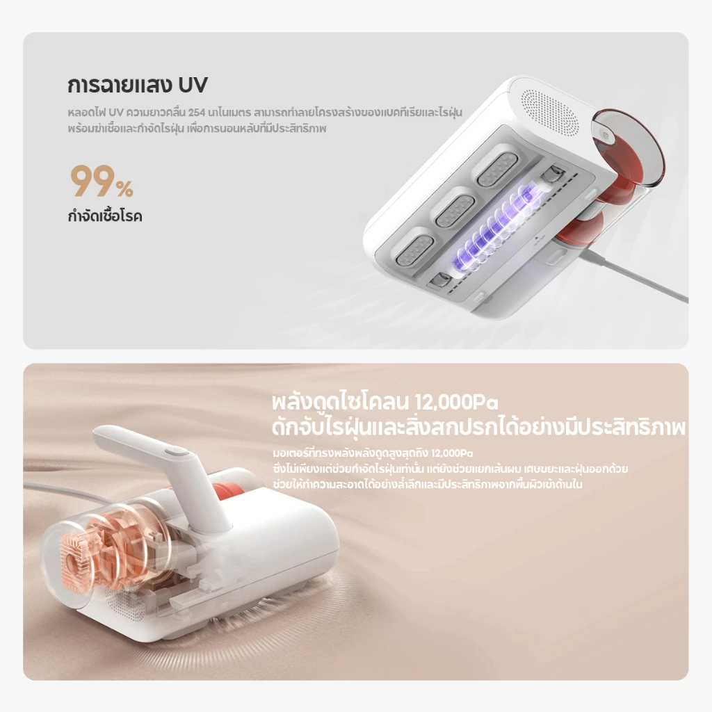 Xiaomi Dust Mite Vacuum Cleaner ดูดไรฝุ่น | 12KPa แรงดูด | เครื่องดูดไรฝุ่น ลมร้อน 50℃ | รับประกัน 1ปี