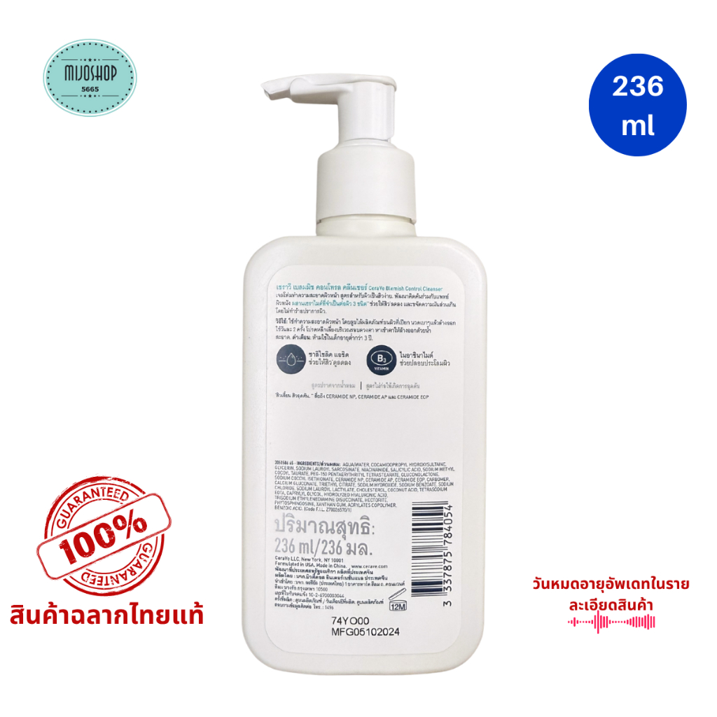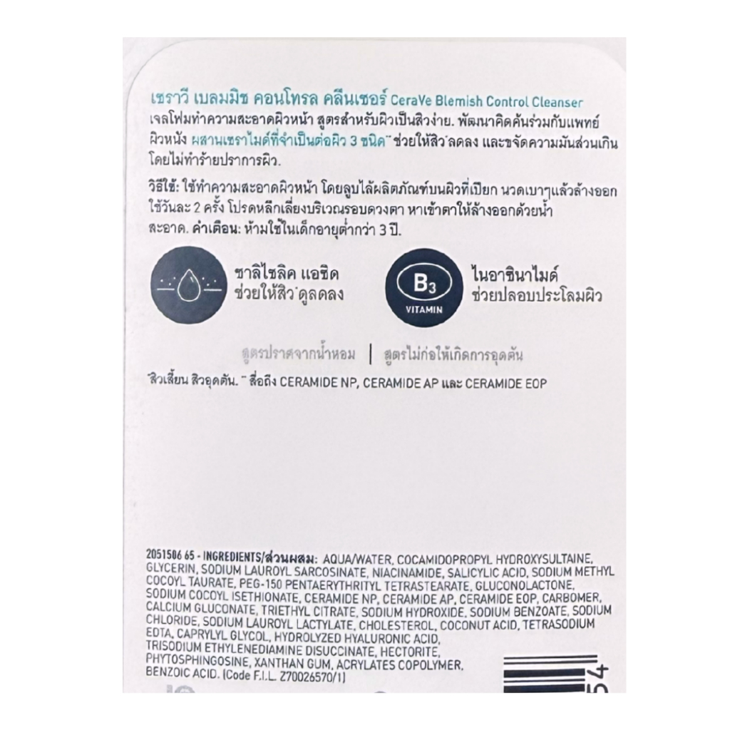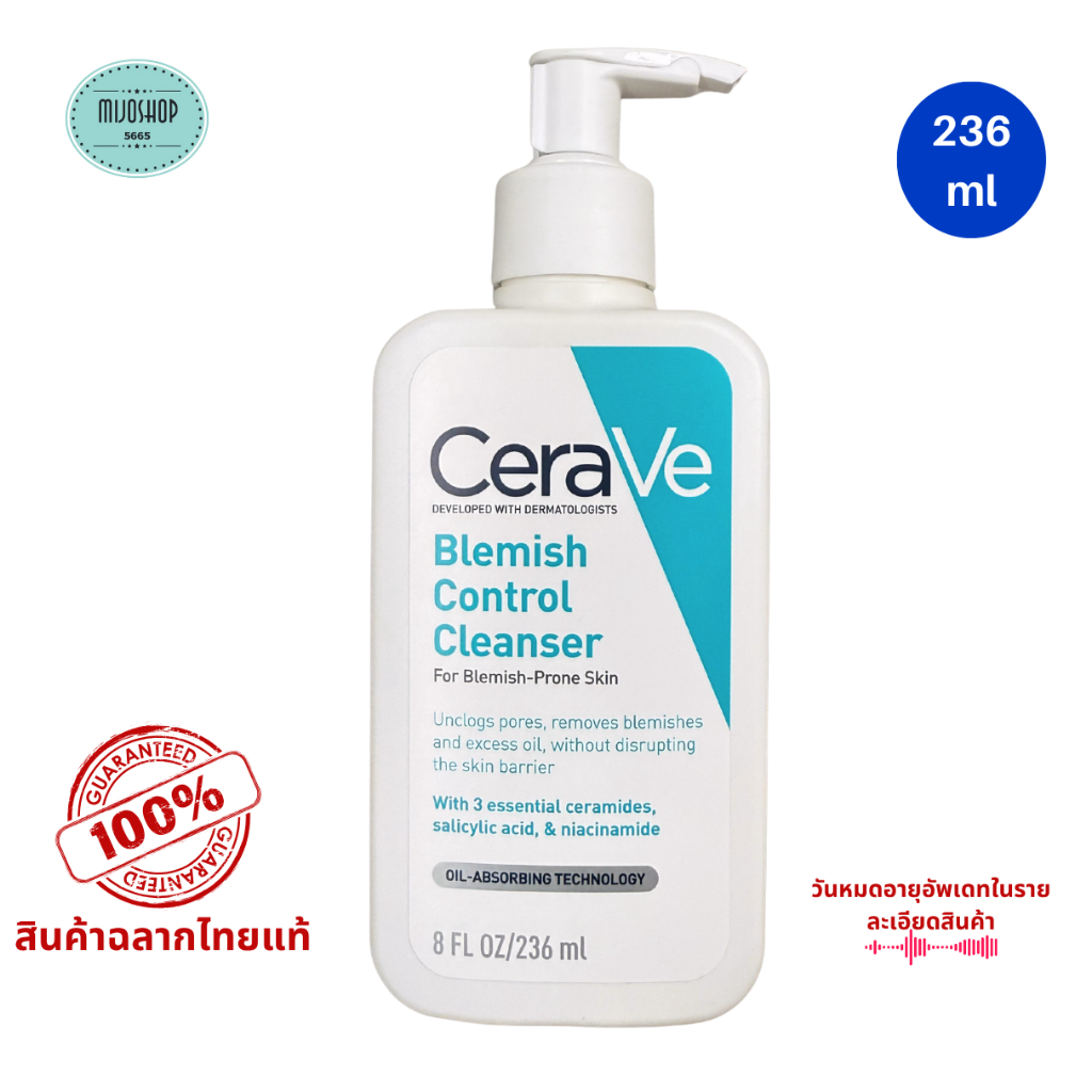 Cerave BLEMISH CONTROL CLEANSER 236 ml เซราวี เบลมมิช คอนโทรล เจลทำความสะอาดผิวหน้า ผิวเป็นสิวง่าย