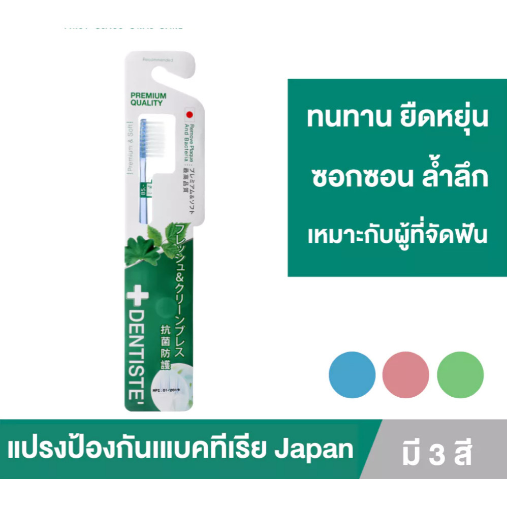 (คละสี) Dentiste Anti-bacteria Toothbrush (Japan) แปรงสีฟันแอนตี้แบคทีเรีย เรียวเล็ก นุ่มพิเศษ เดนทิสเต้ [FC]