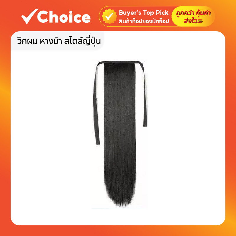 วิกผม หางม้า สไตล์ญี่ปุ่น โลลิต้า แบบคลิปติดและผูกเชือก ความ ยาว 65 ซม. สีดำ หางม้าเดี่ยว