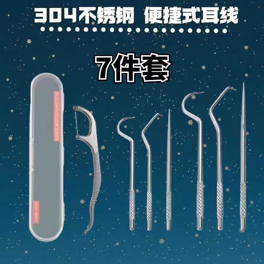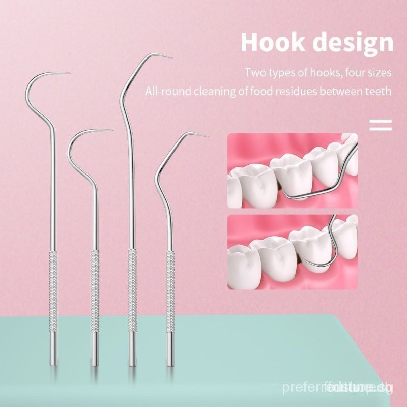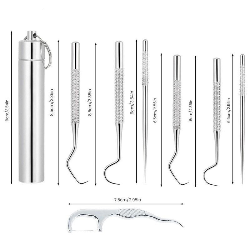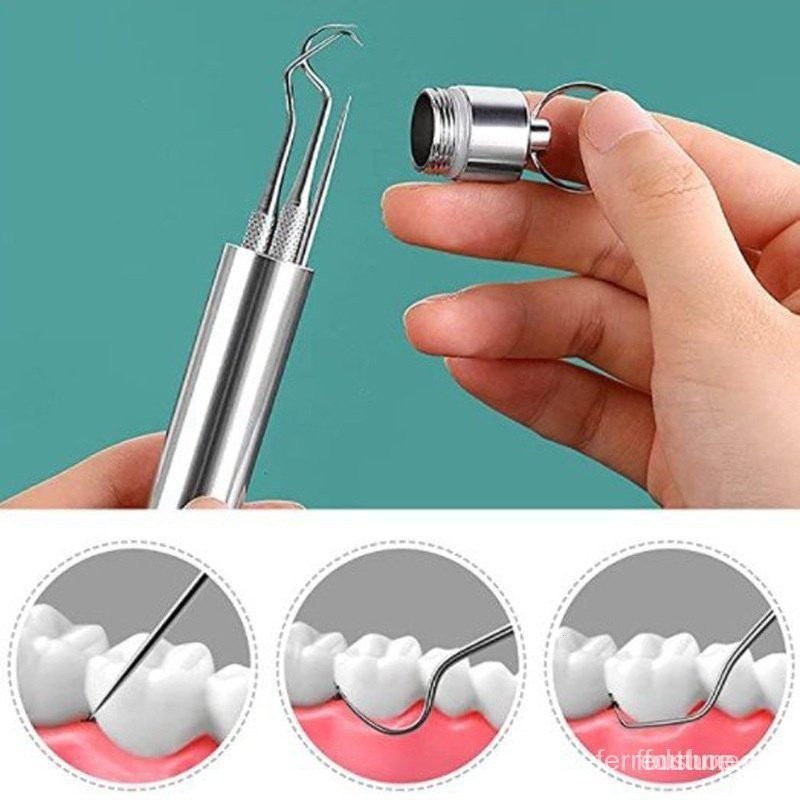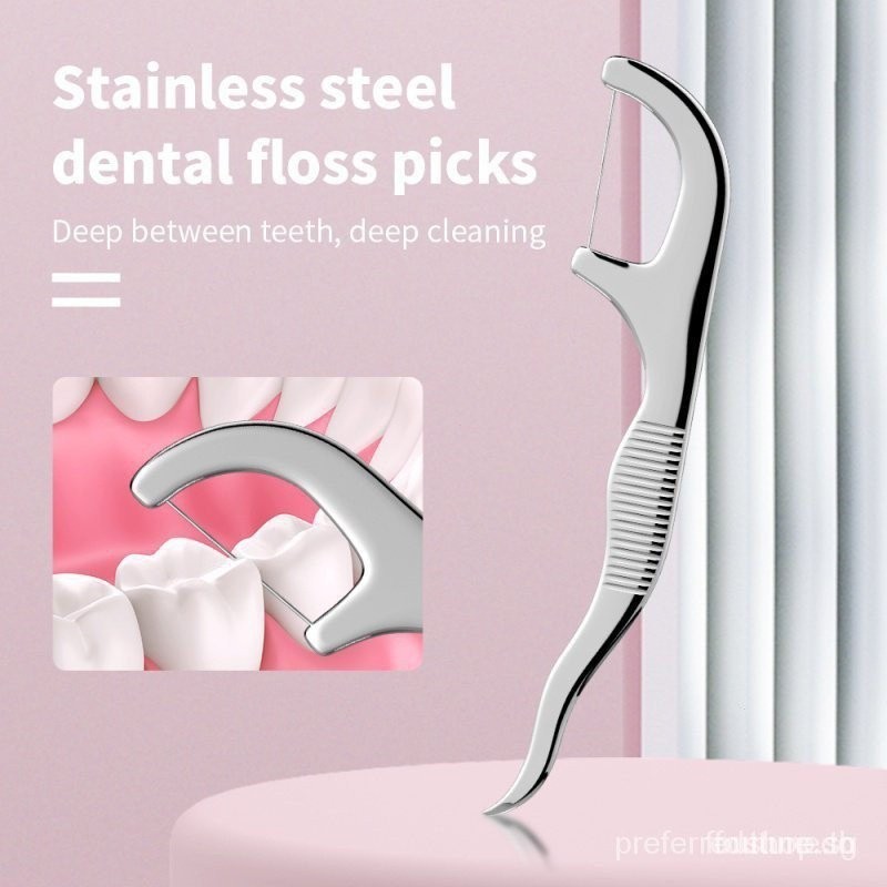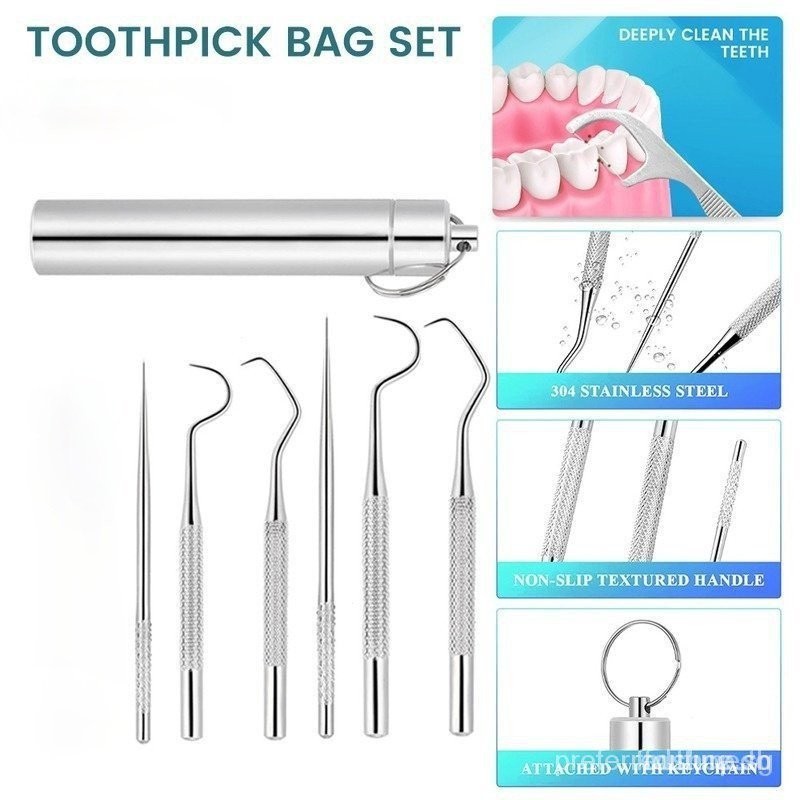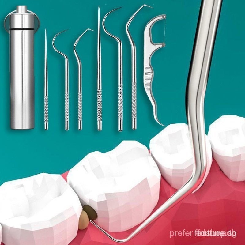 7 ชิ ้ น/1 ชุดทันตกรรมด ้ ายไม ้ จิ ้ มฟันสแตนเลสโลหะแปรงซอกฟันแบบพกพาทําความสะอาด Flossers Oral Care จี ้