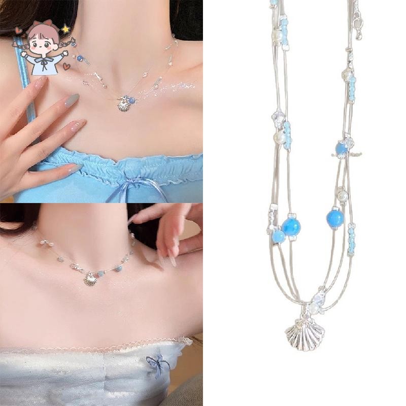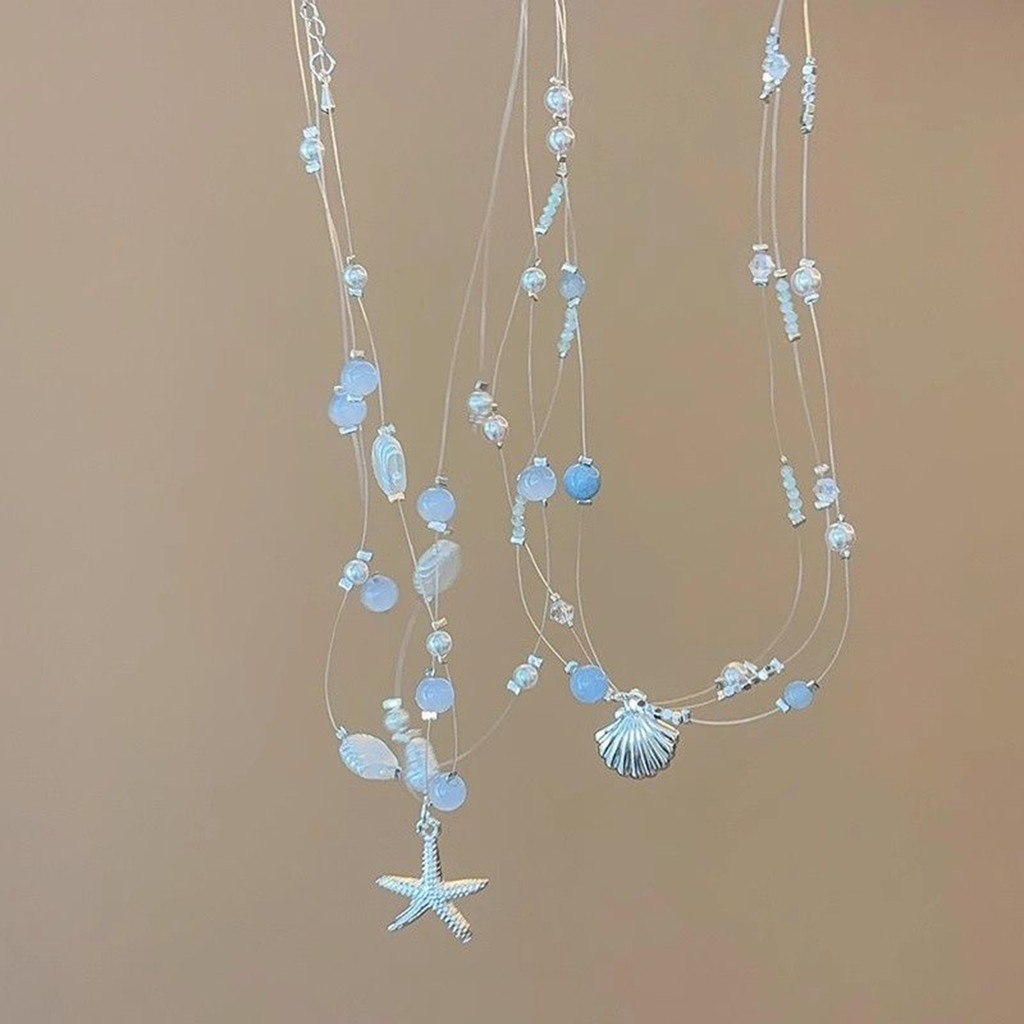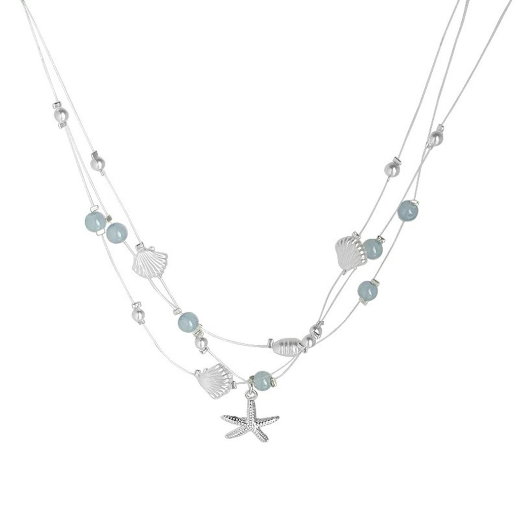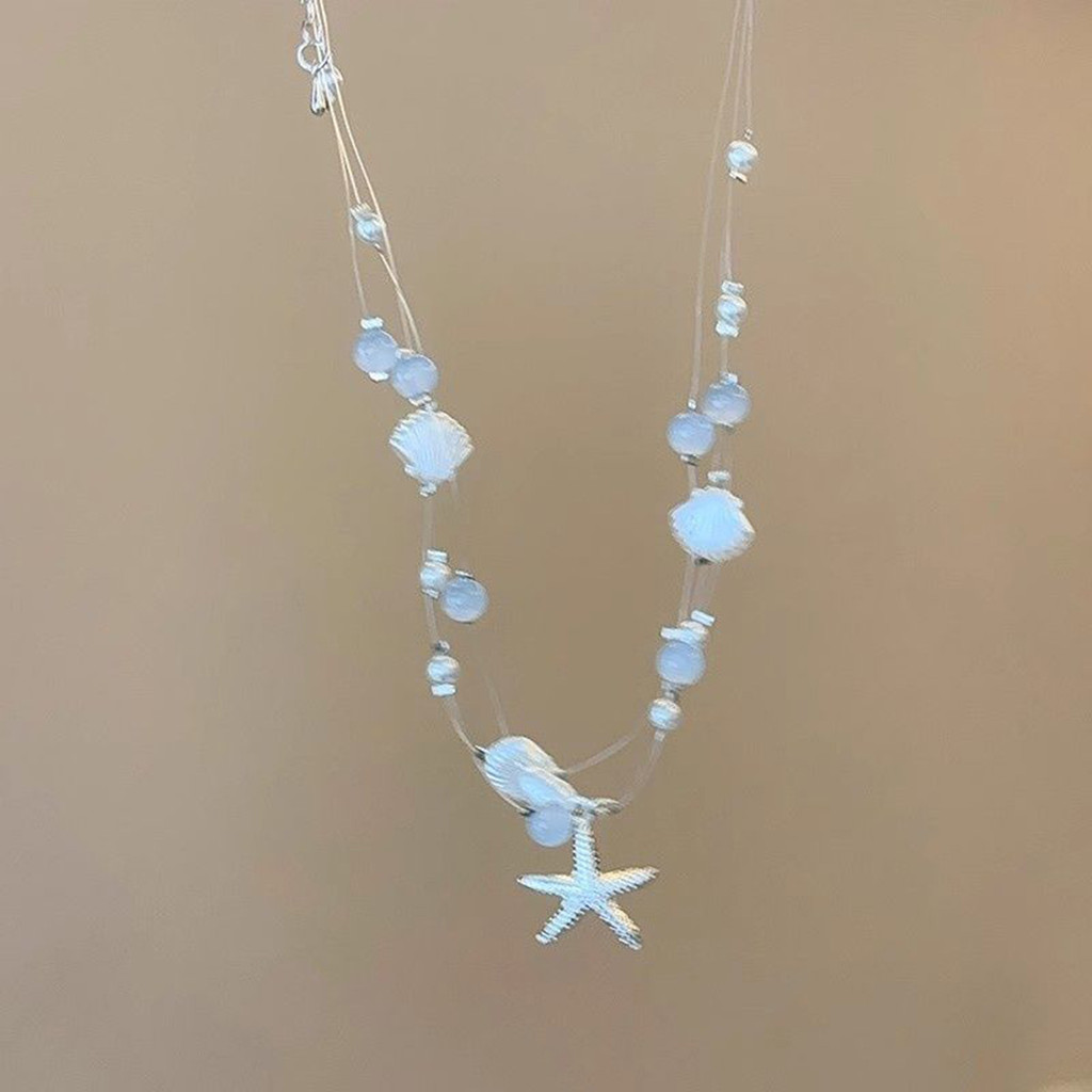 สร้อยคอลูกปัดสำหรับผู้หญิงและสาวสองชั้น แบบปลาดาวและกระดูกไหปลาร้า พร้อมสร้อยคอดีไซน์สวยสำหรับปาร์ตี้ชายหาด น่ารักและหวาน