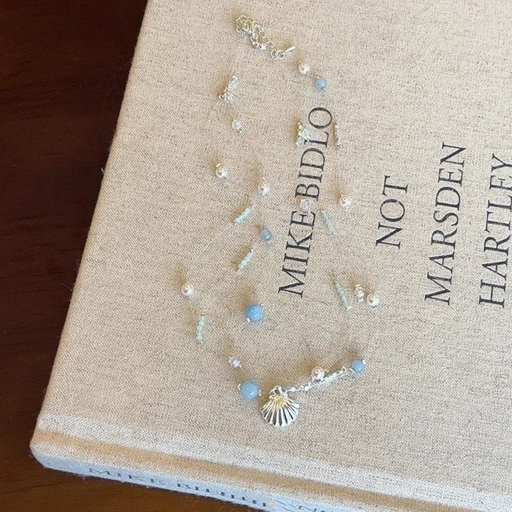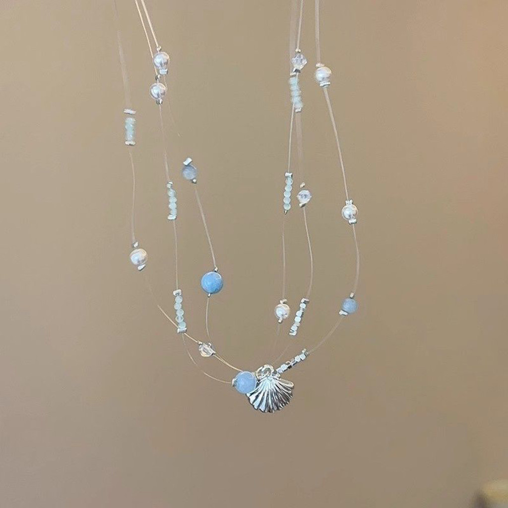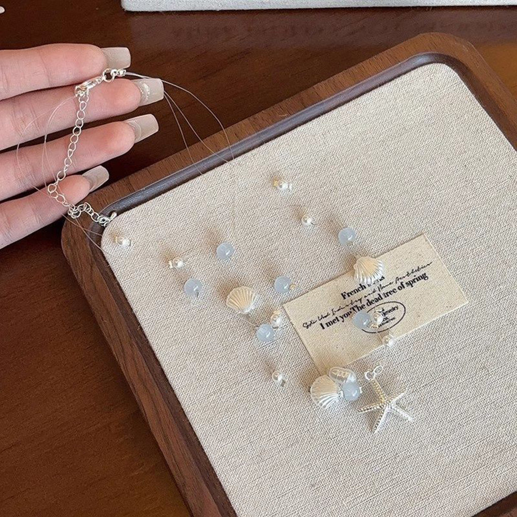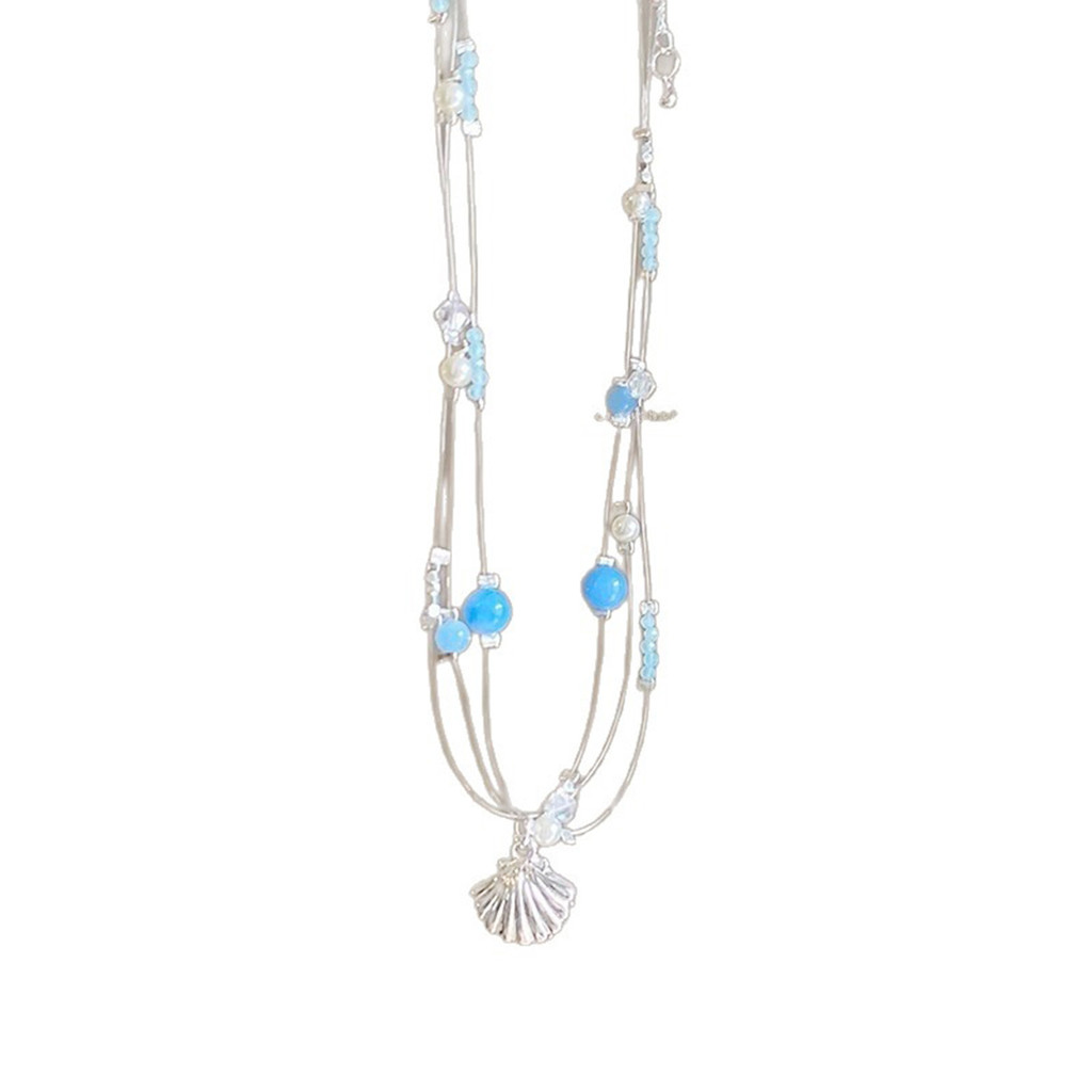 สร้อยคอลูกปัดสำหรับผู้หญิงและสาวสองชั้น แบบปลาดาวและกระดูกไหปลาร้า พร้อมสร้อยคอดีไซน์สวยสำหรับปาร์ตี้ชายหาด น่ารักและหวาน