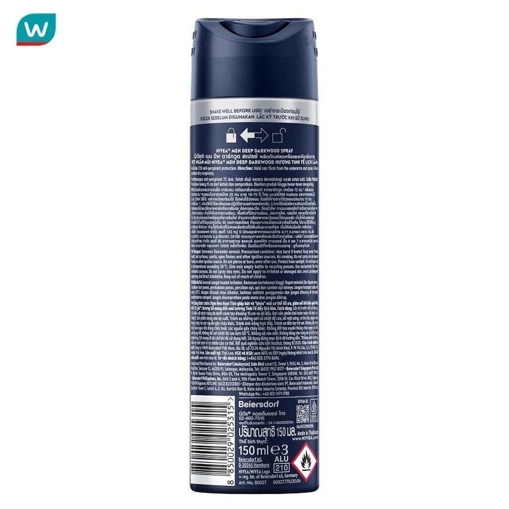 Nivea นีเวีย เมน ดิโอ สเปรย์ ดีพ ดาร์กวูด 150 มล. ผู้ชาย สเปรย์ ลดเหงื่อ ระงับกลิ่นกาย