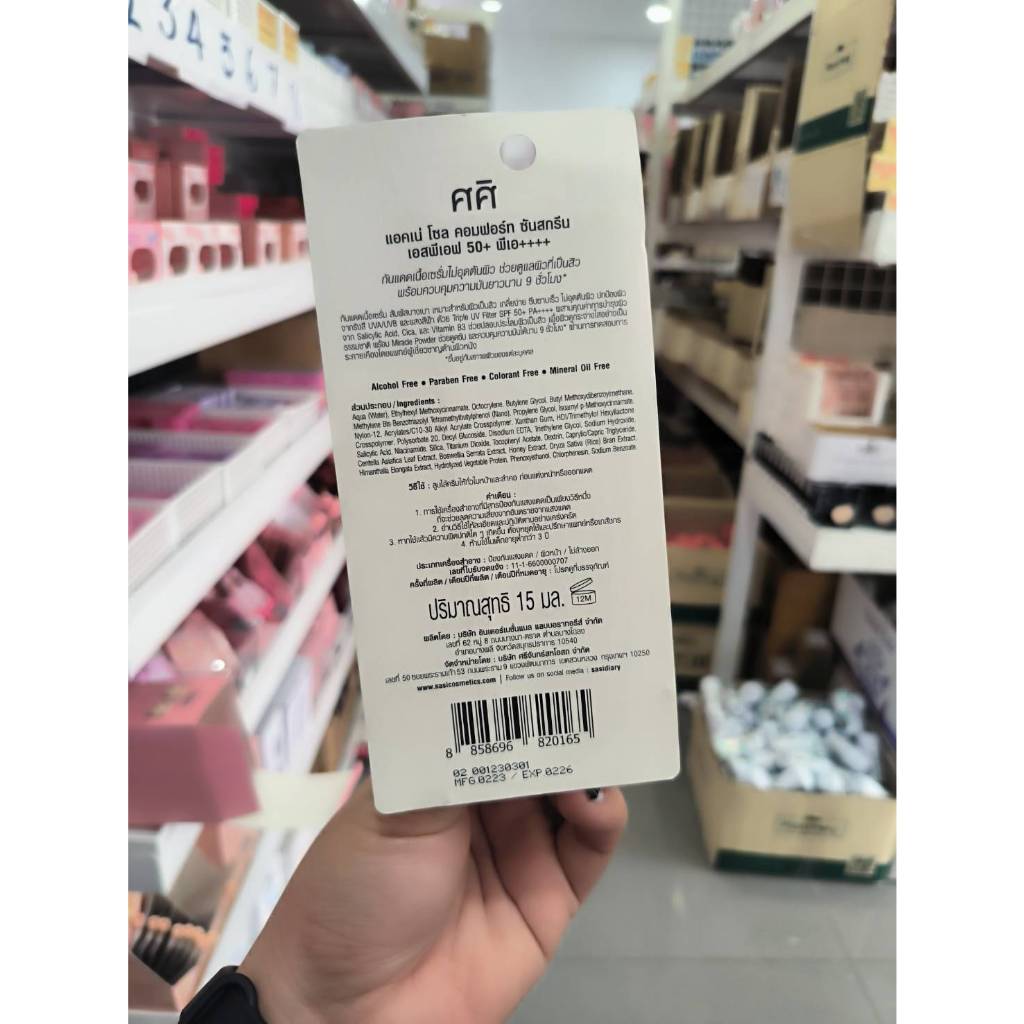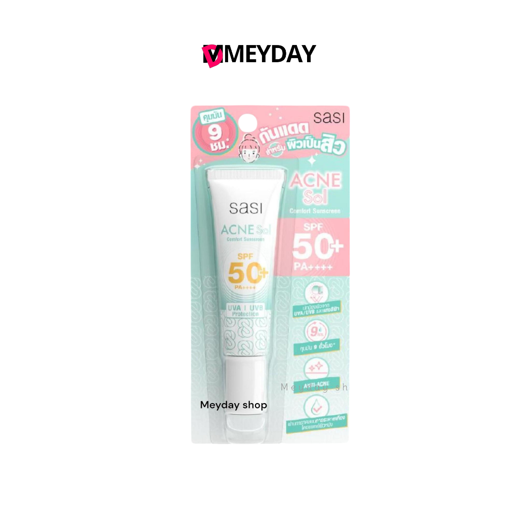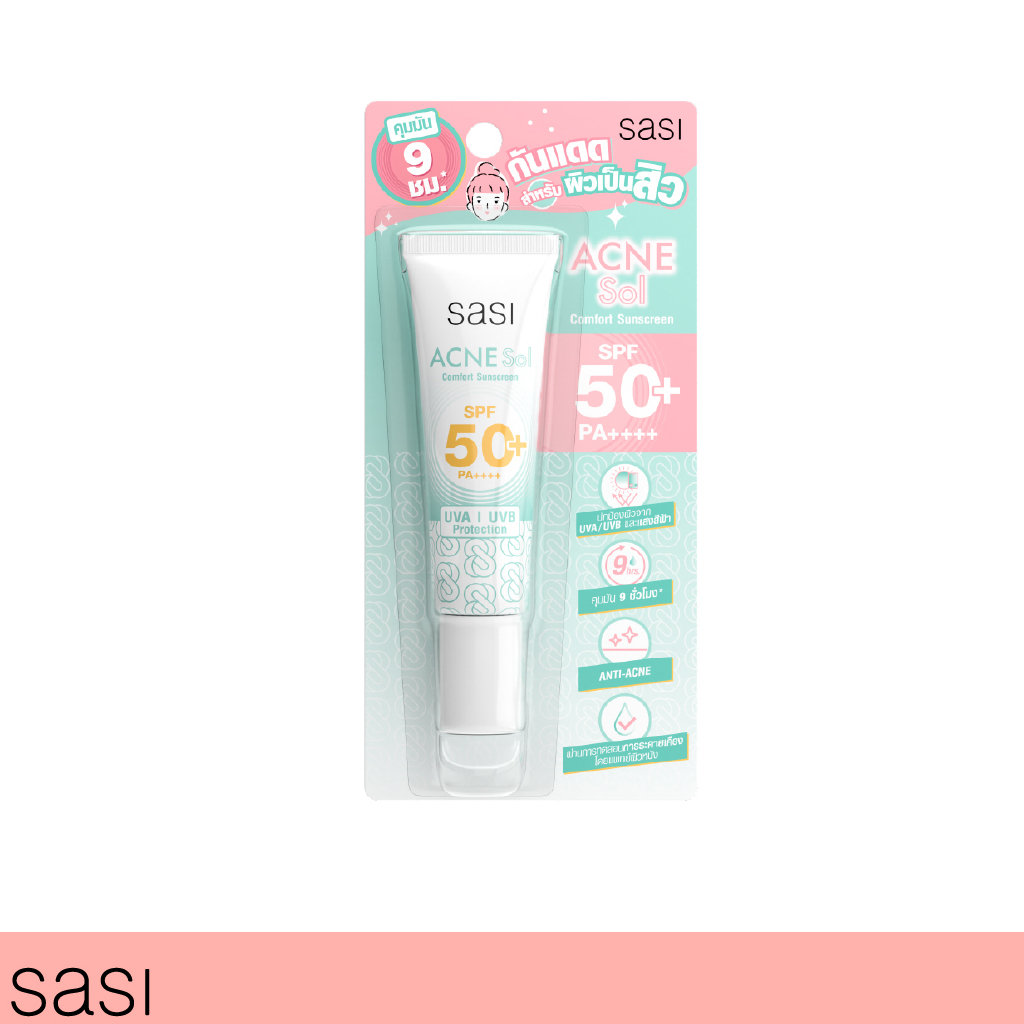 sasi ครีมกันแดดศศิแอคเน่ โซล คอมฟอร์ท ซันสกรีน Acne Sol Comfort Sunscreen SPF 50+ PA++++ ครีมกันแดดสำหรับคนเป็นสิว