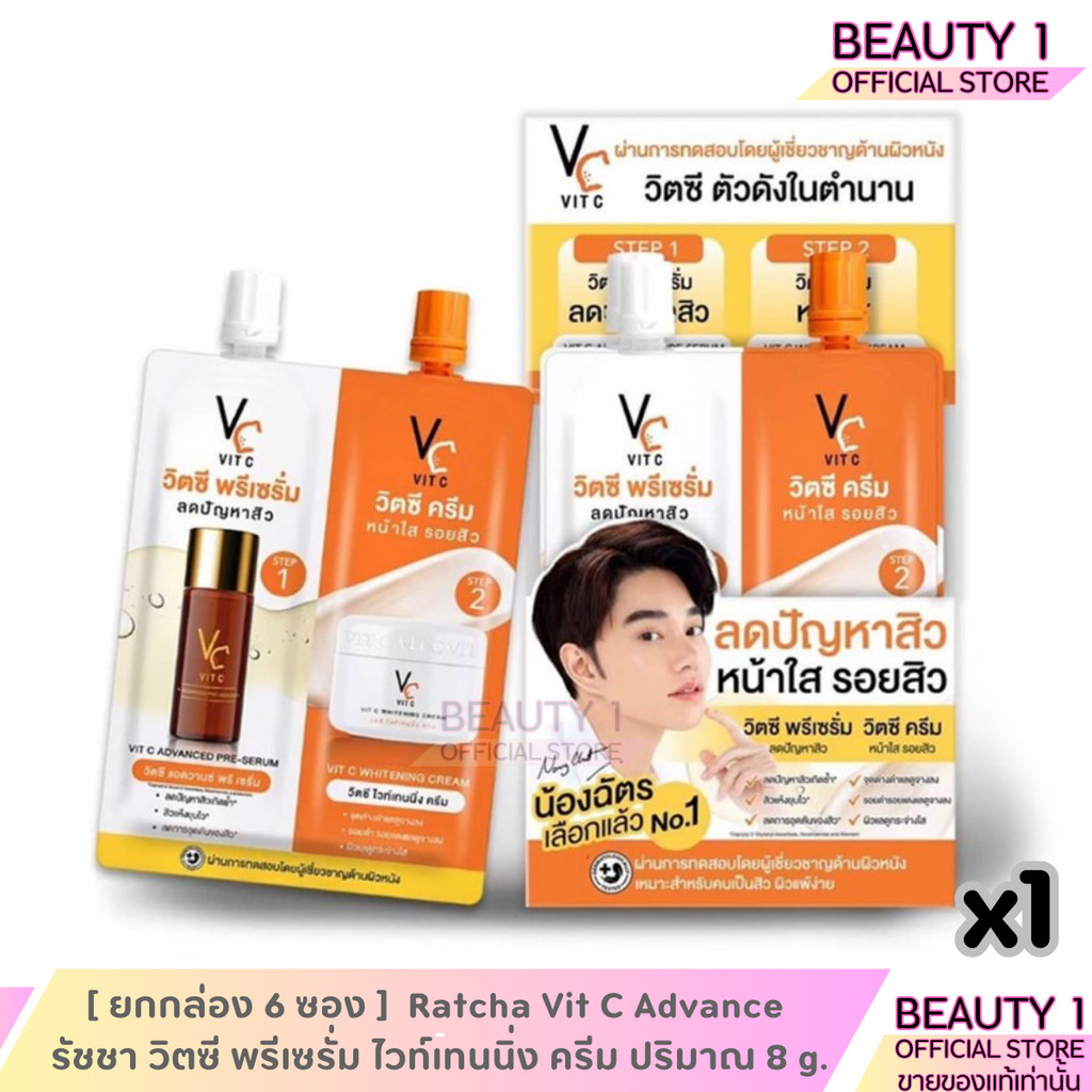 [ ยกกล่อง 6 ซอง ] Ratcha Vit C Advance Pre Serum & Whitening Cream รัชชา วิตซี พรีเซรั่ม ไวท์เทนนิ่ง ครีม