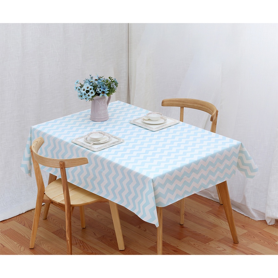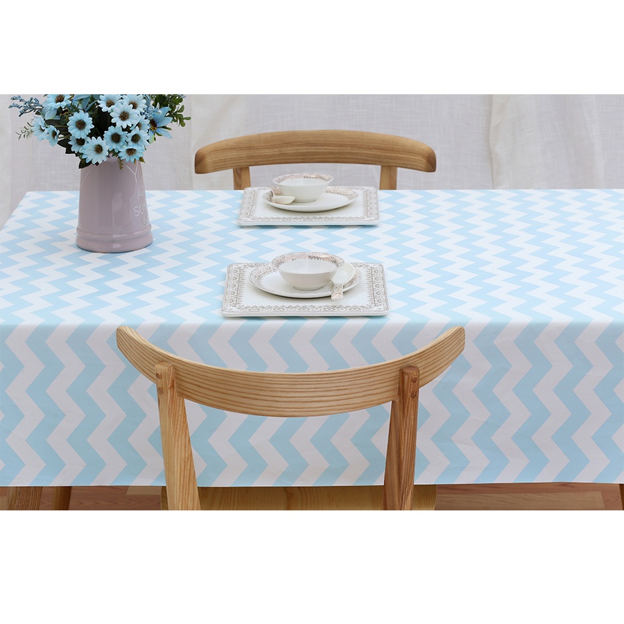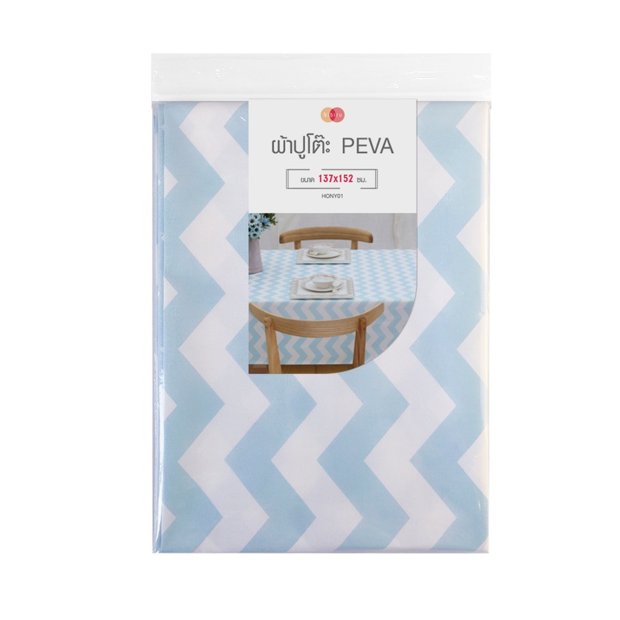 GlobalHouse NIBIRU ผ้าปูโต๊ะ PEVA 137x152 ซม. HONY01 ลายหยัก สีฟ้าขาว สินค้าของแท้คุณภาพดี