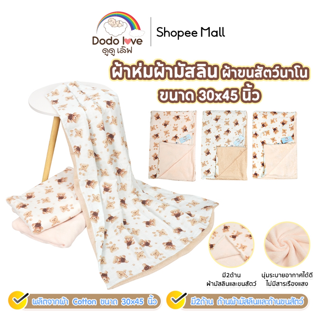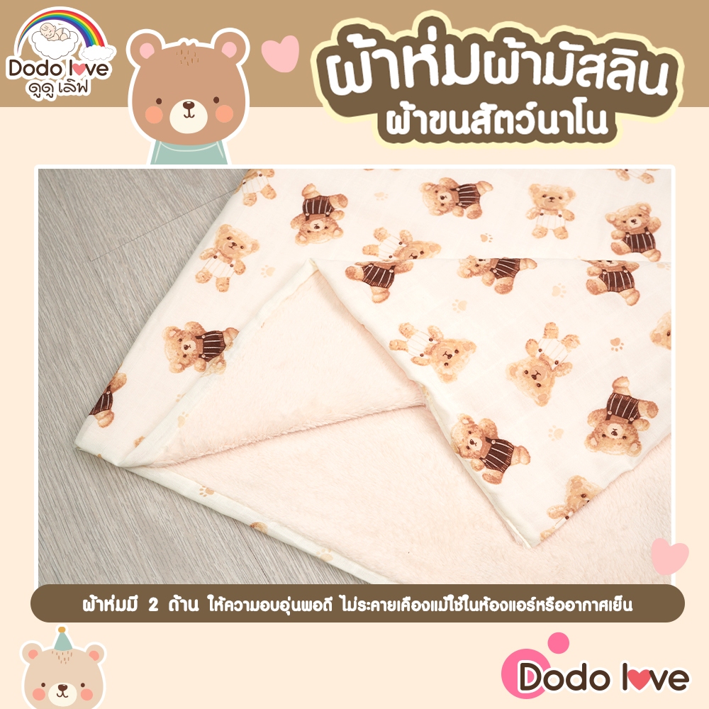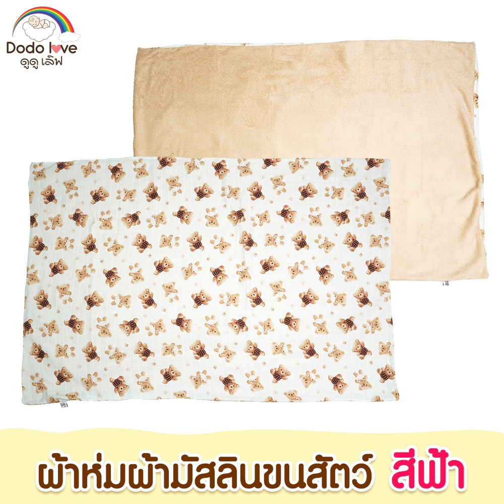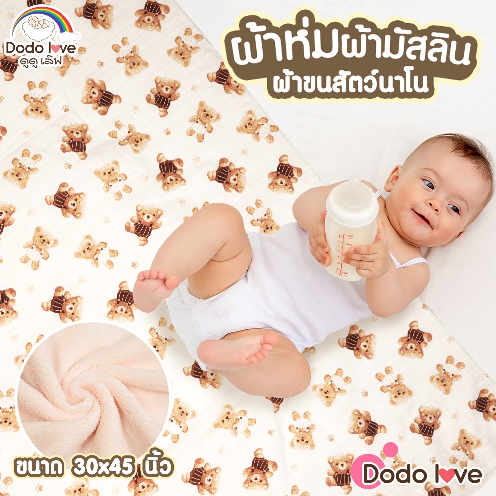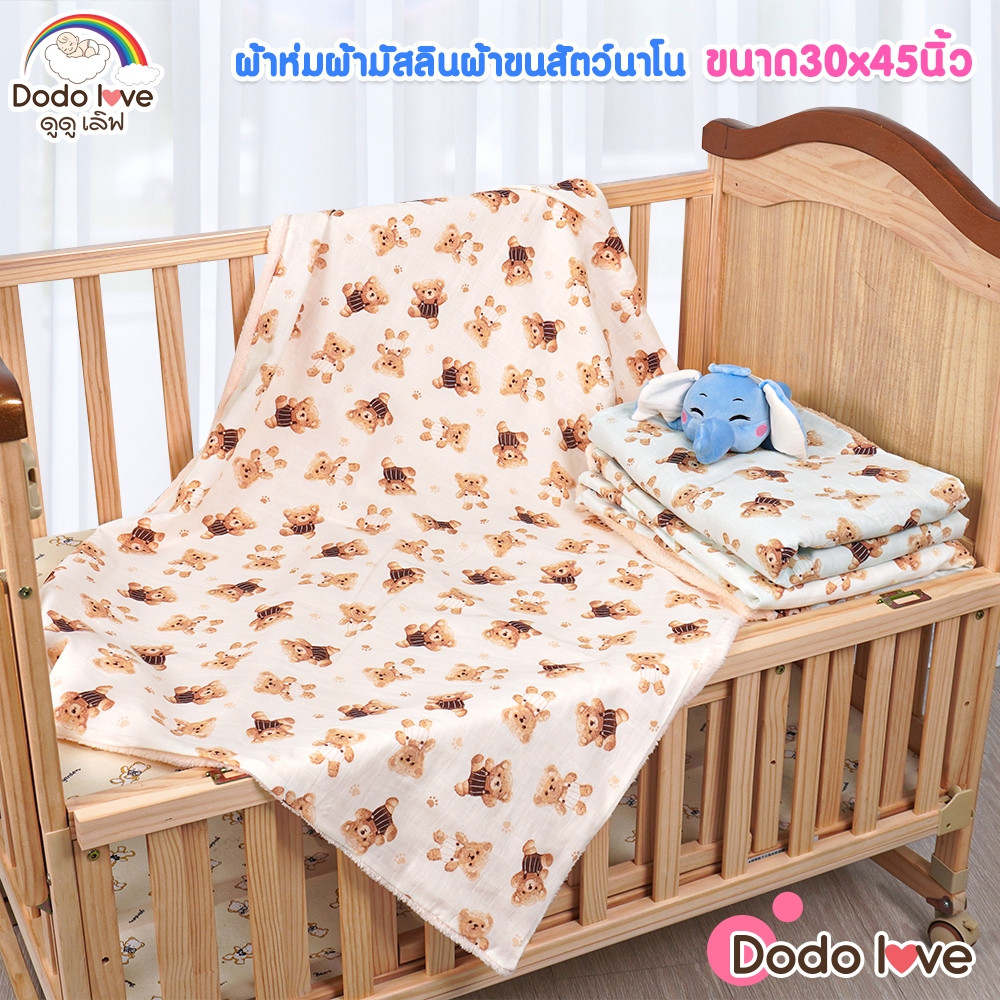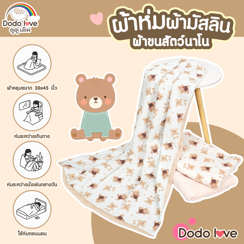 DODOLOVE ผ้าห่ม ผ้าห่มเด็ก ผ้ามัสลิน ผ้าขนสัตว์นาโน ขนาด30x45นิ้ว ลายหมี ขนนุ่ม ระบายอากาศได้ดี ไม่อับชื้น