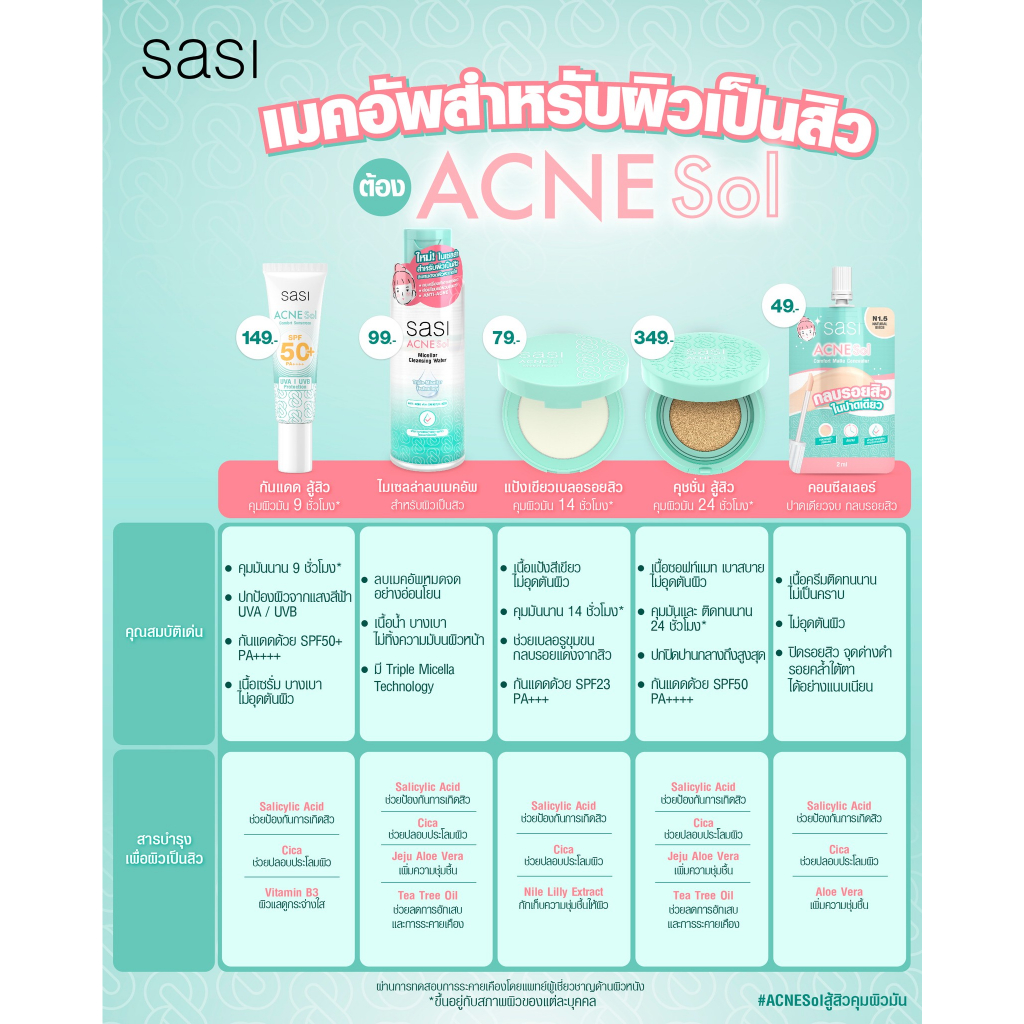 [SALE][EXP.1/7/26] SASI Acne Sol Sunscreen Concealer Cleansing ศศิ แอคเน่ โซล ลูส ซันสกรีน คอลซิลเลอร์ คลีนซิ่ง