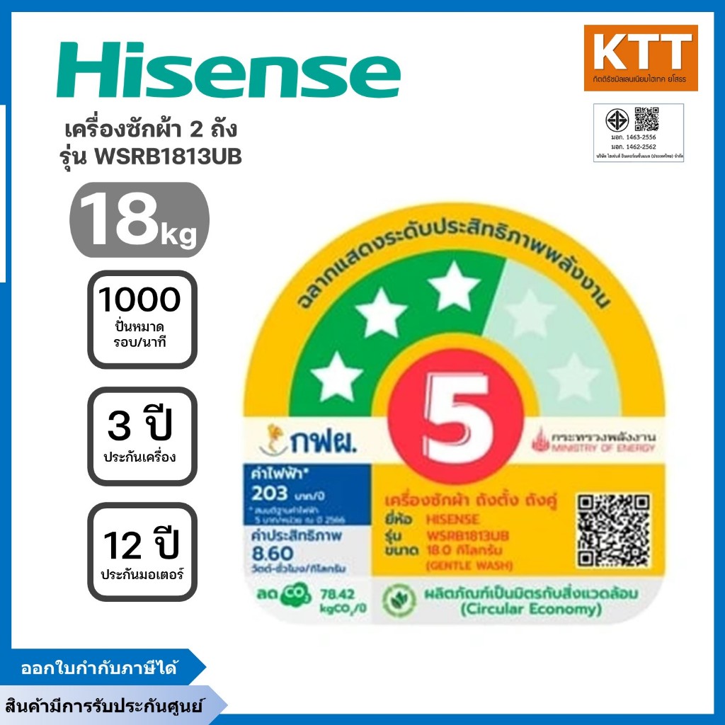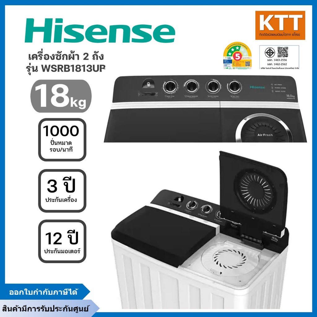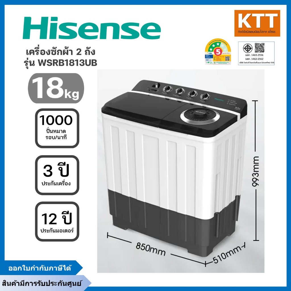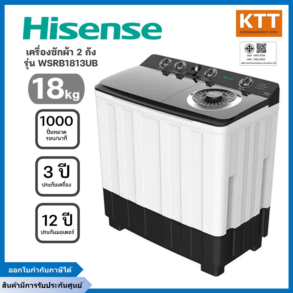 Hisense ไฮเซนส์ เครื่องซักผ้า2ถังฝาบน 18 KG รุ่น WSRB1813UB สี ดำขาว