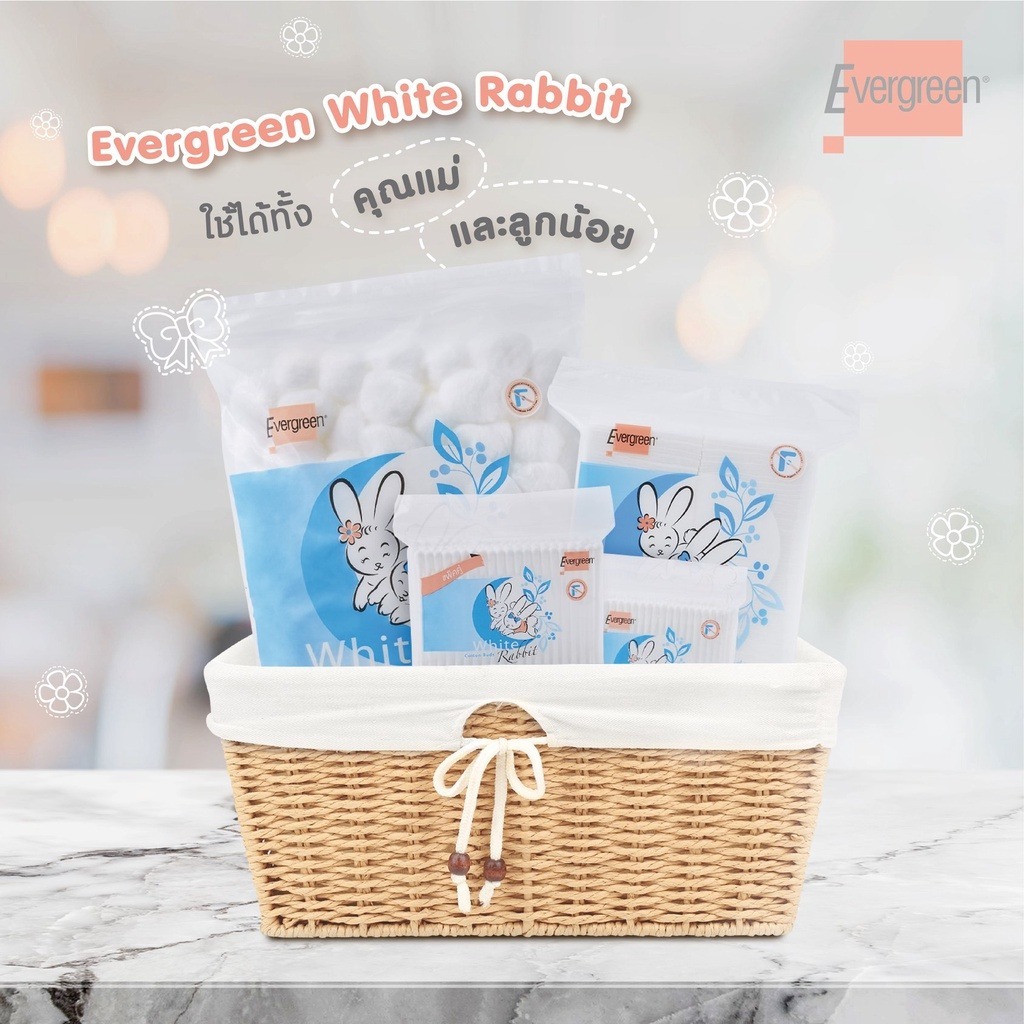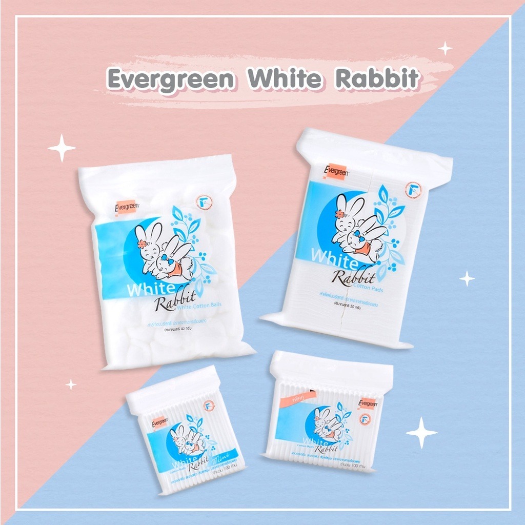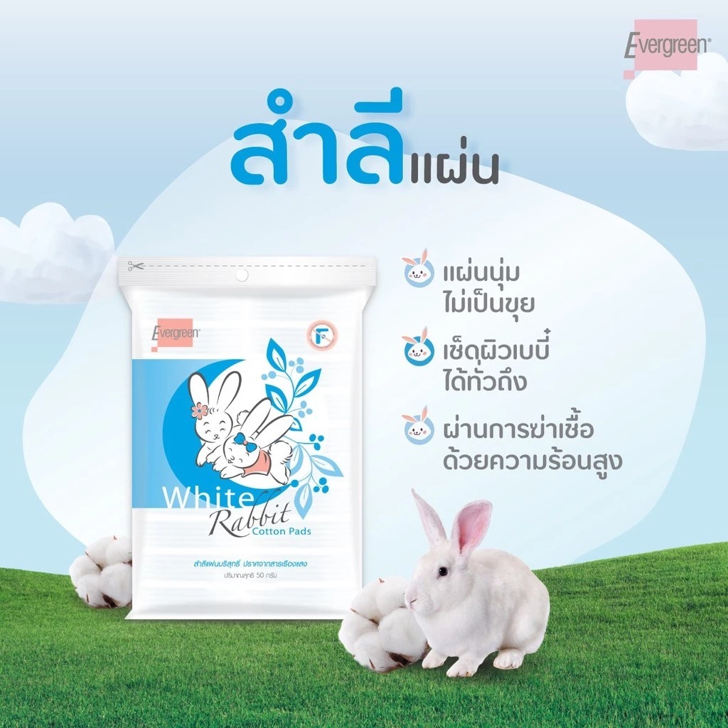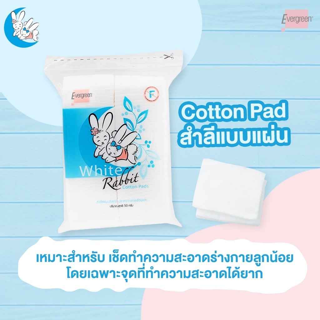 (แพ็ค 2ห่อ) Evergreen Cotton Pad White Rabbit 50g เอเวอร์กรีน สำลีแผ่นกระต่าย 50กรัม