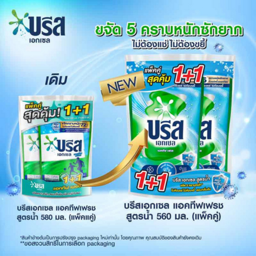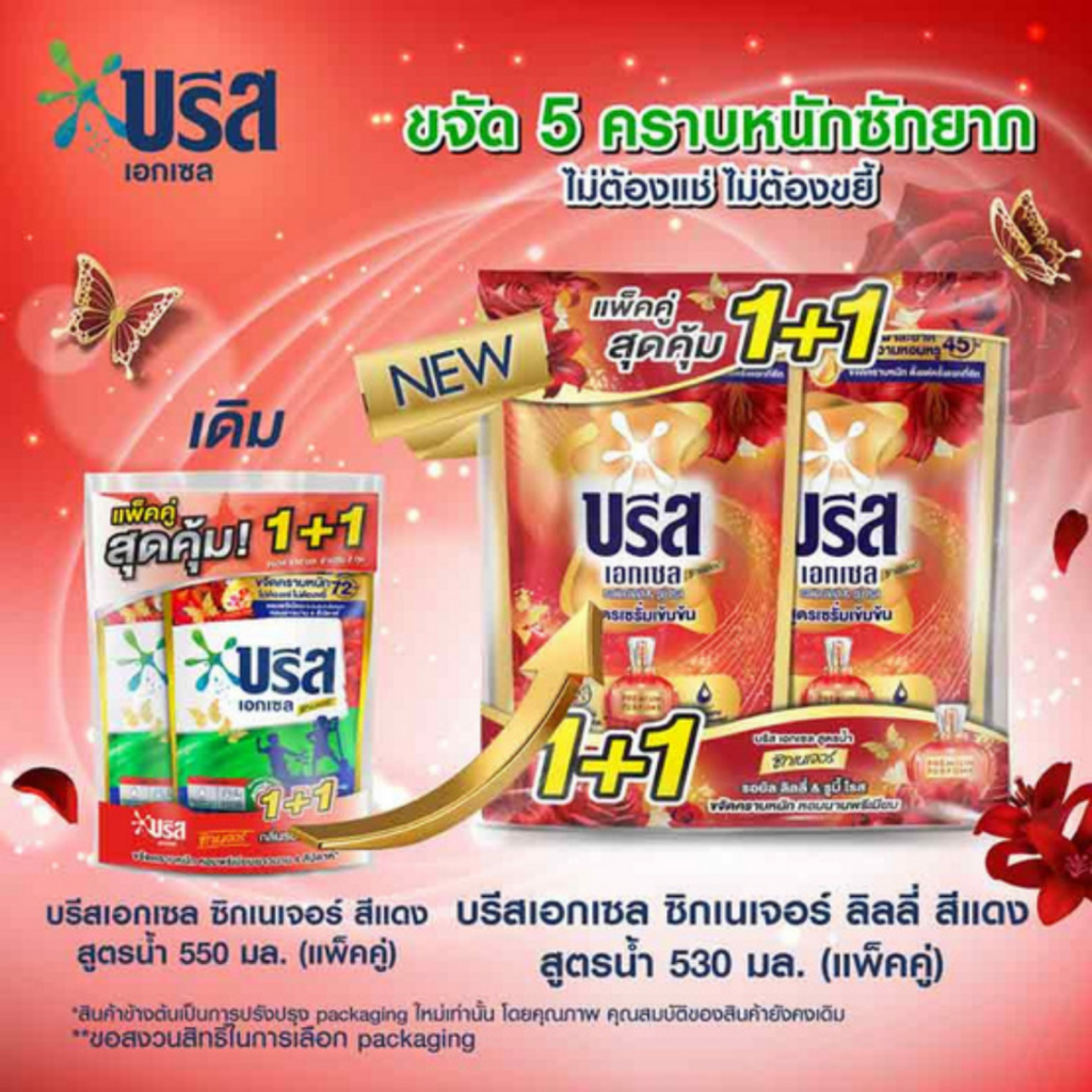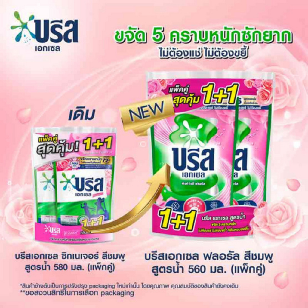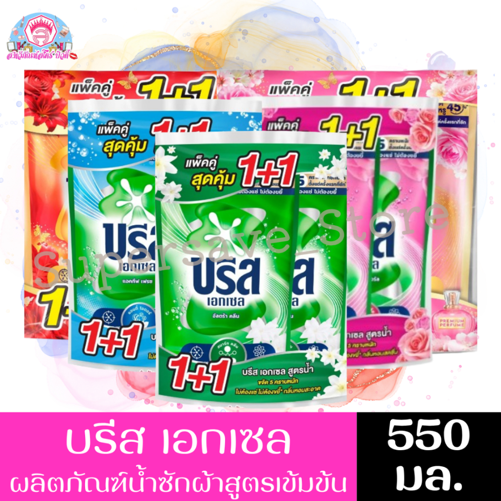 บรีส เอกเซล แพ็คสุดคุ้ม1+1 น้ำยาซักผ้า ขนาด 550มล.*//*แพ็ค*//*