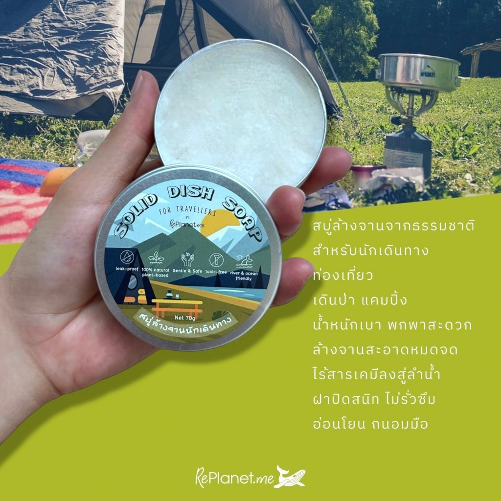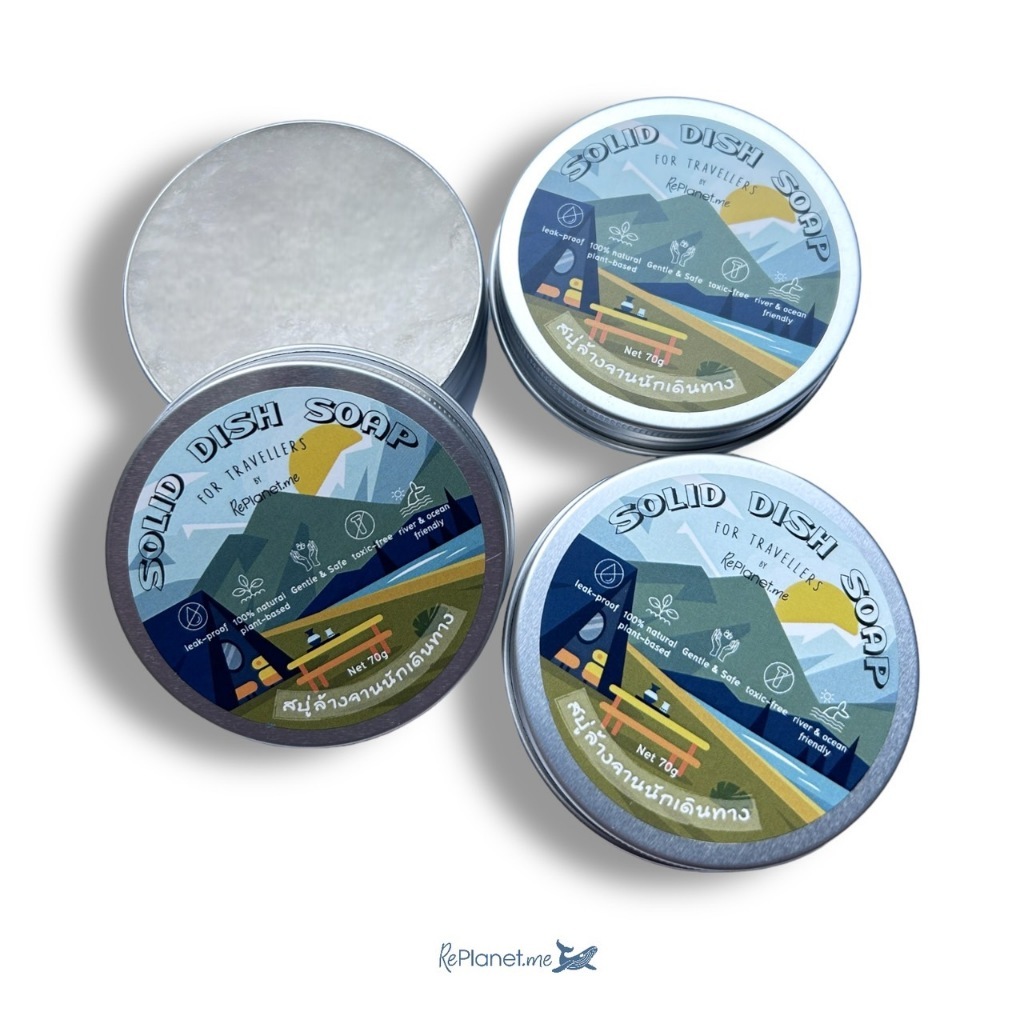 RePlanetMe สบู่ก้อนล้างจานแบบพกพาสำหรับนักเดินทาง Solid Dish Soap for Travelers (70 g)