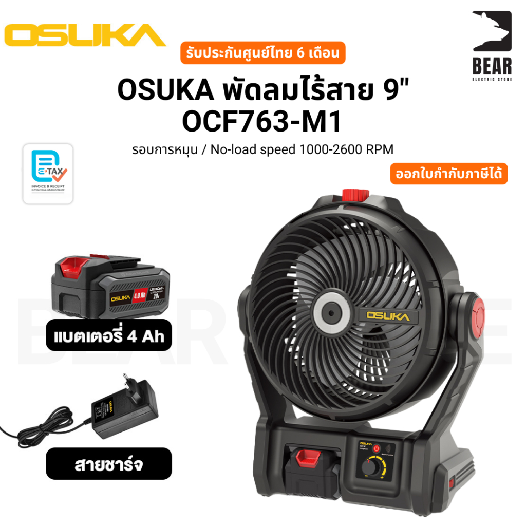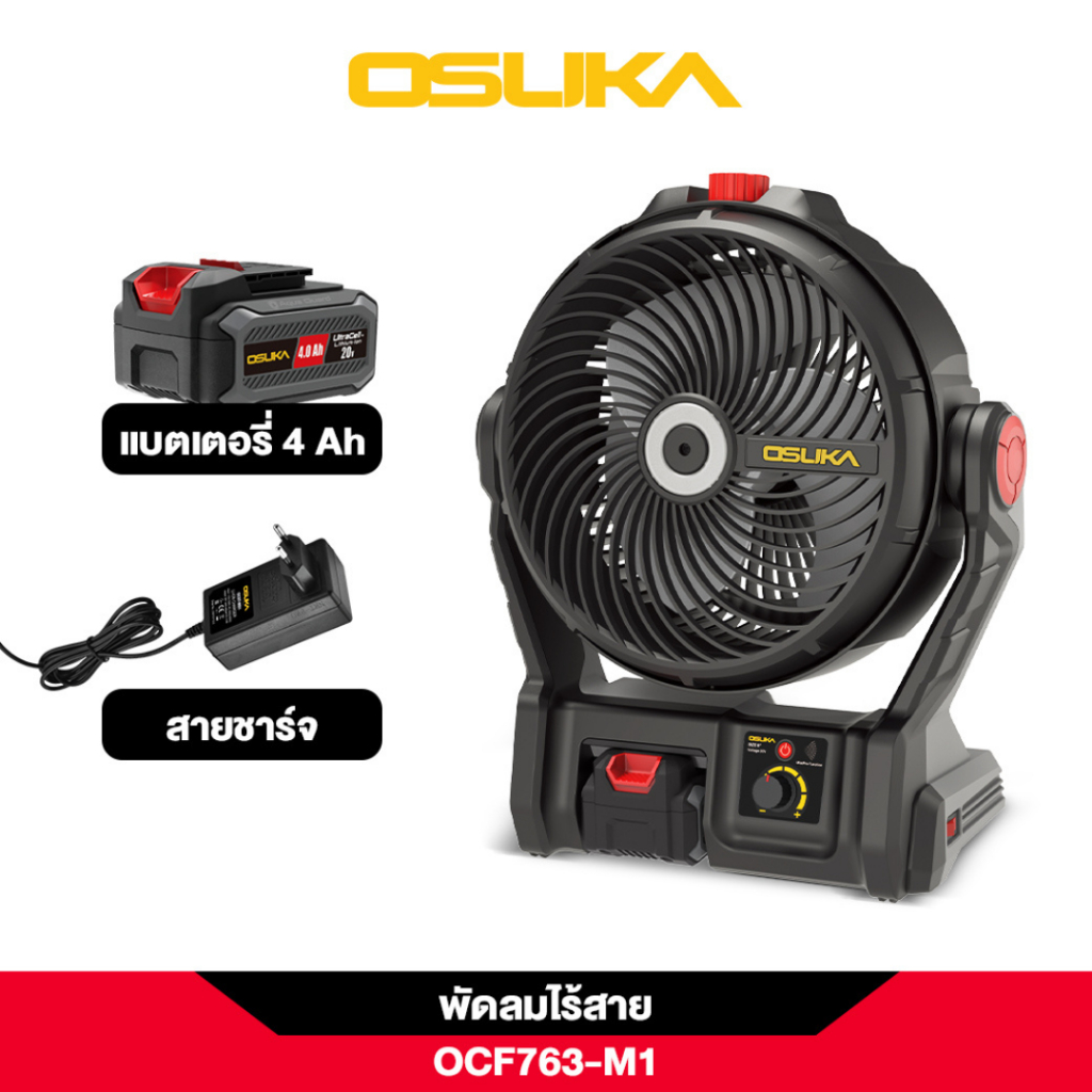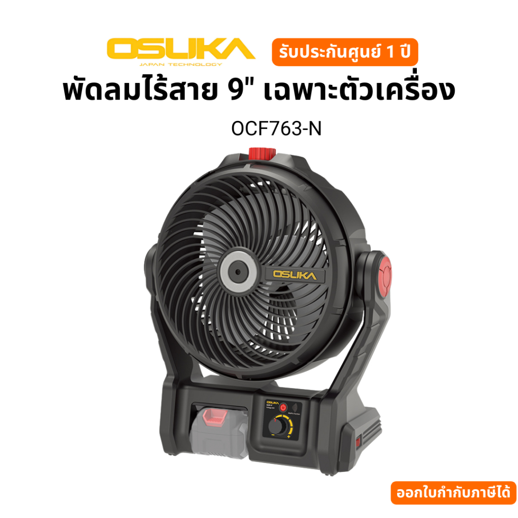 OSUKA พัดลมไร้สาย 9" OCF763-M1 รอบการหมุน / No-load speed 1000-2600 RPM รับประกันศูนย์ไทย 6 เดือน