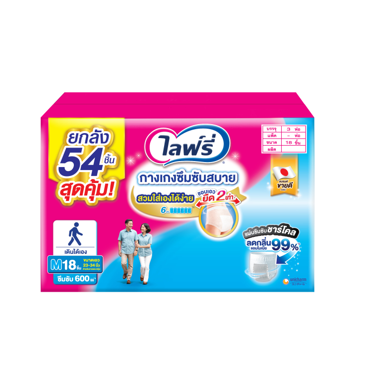 ไลฟ์รี่ กางเกงซึมซับสบาย ขนาด M 18 ชิ้น (1x3 ห่อ ยกลัง)/Lifree LP M 18 pcs (1x3)