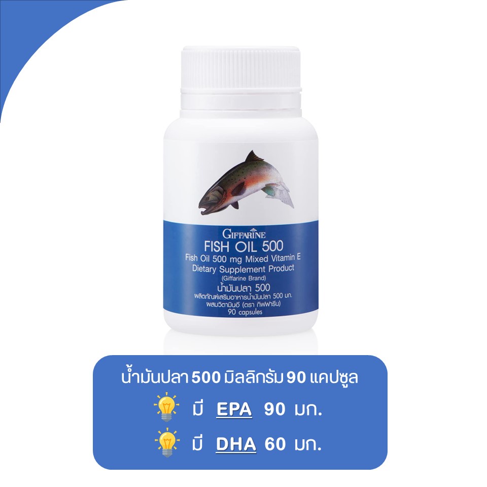[ ส่งฟรี ] น้ำมันปลา กิฟฟารีน FISH OIL 500 มิลลิกรัม 90 แคปซูล น้ำมันตับปลา GIFFARINE Fish oil บำรุงสมอง ความจำ