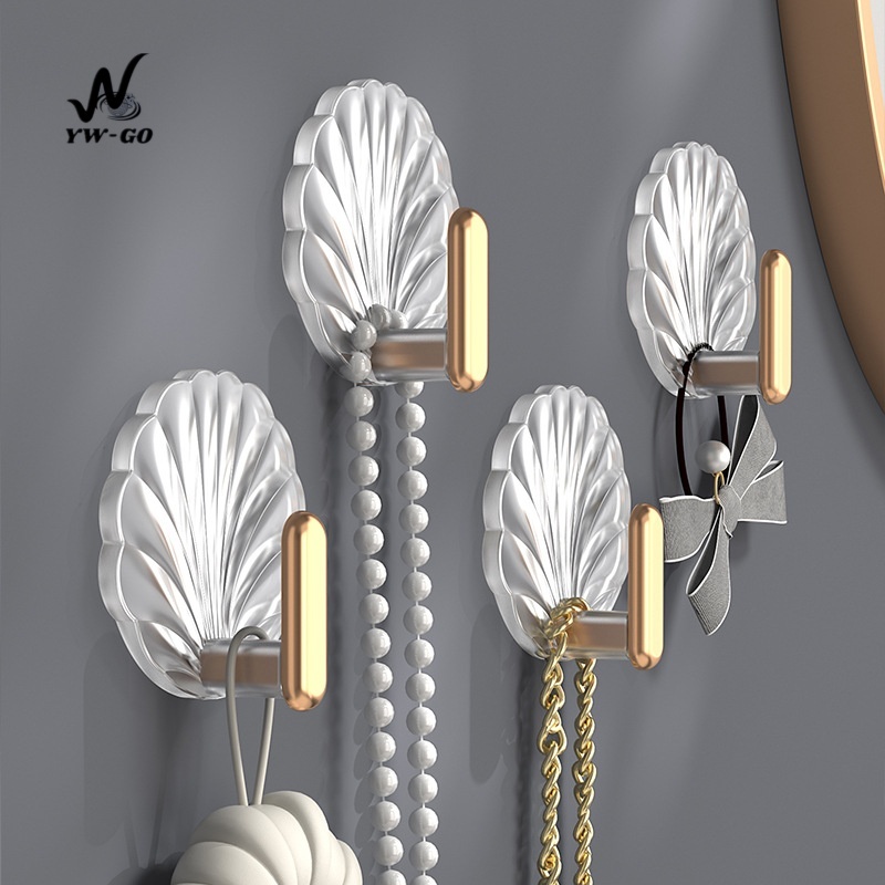 1/4pcs ตะขอ ตะขอติดผนังอะคริลิครูปเปลือกหอย แบบติดผนังตะขอเหนียว ไม่ต้องเจาะ G3476
