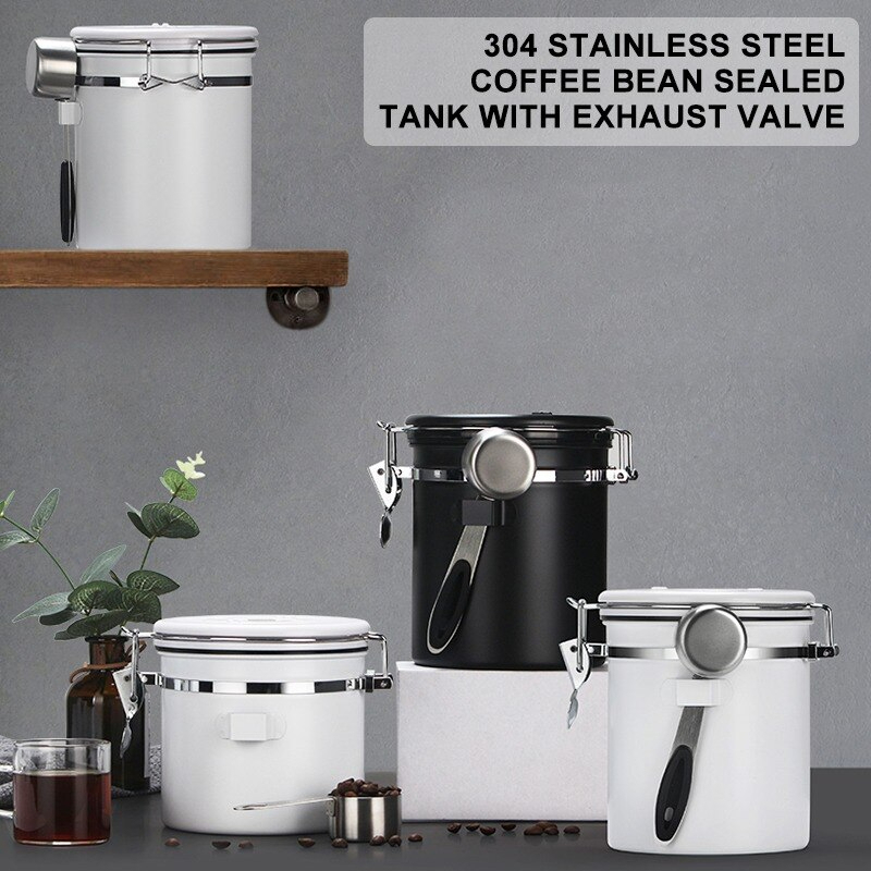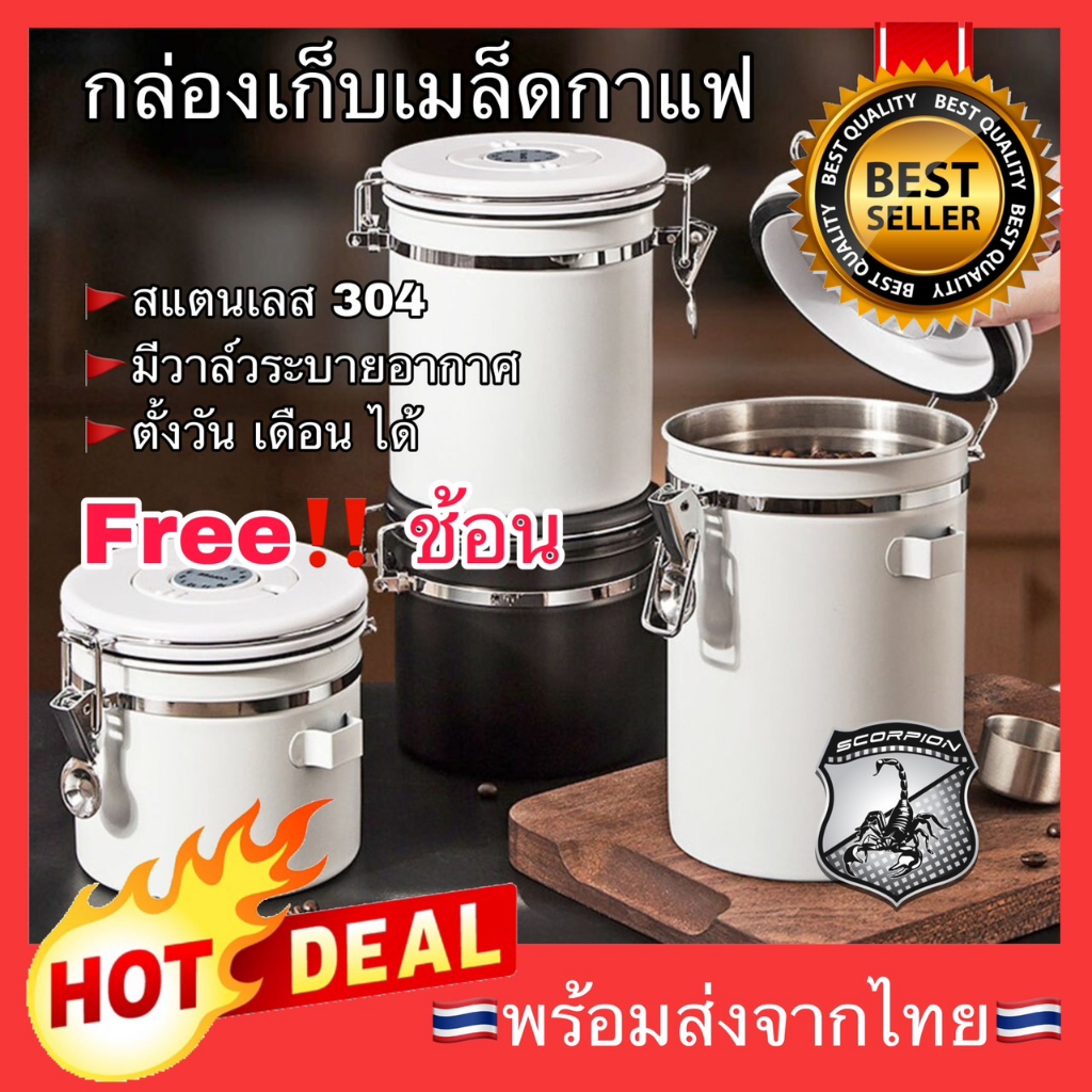 🔥304แท้🔥กล่องเก็บเมล็ดกาแฟ ที่เก็บกาแฟ โถเก็บเมล็ดกาแฟ สแตนเลส ขนาด 1.2 /1.5L / 2L Coffee Sealed Tank