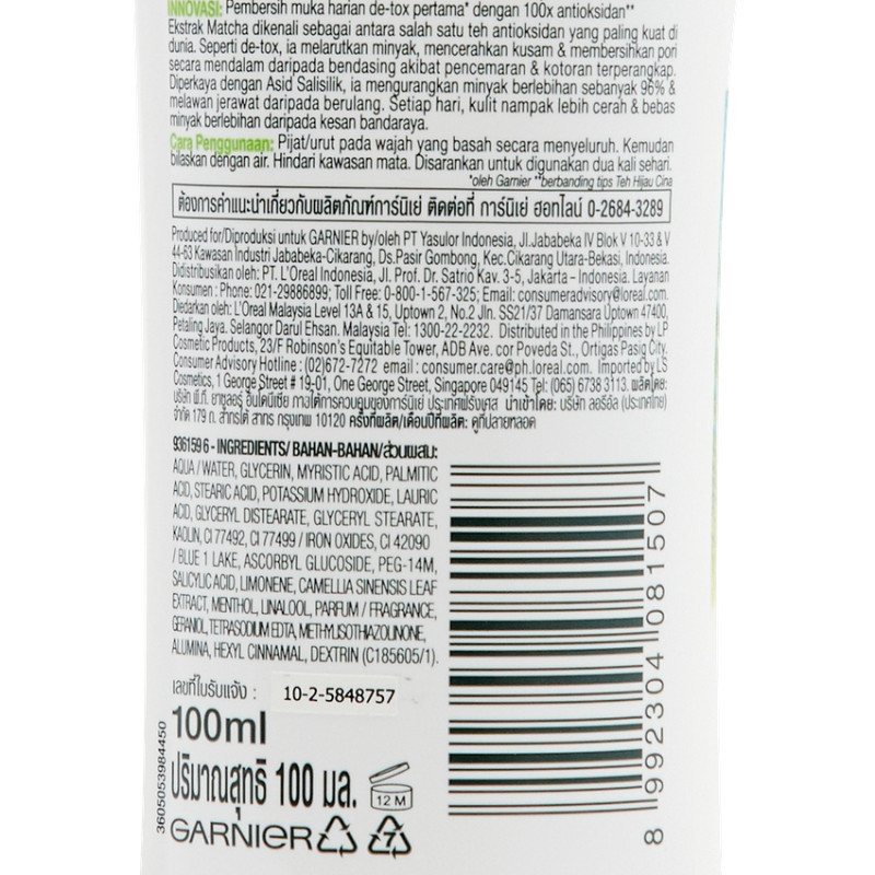 การ์นิเย่ เพียว แอคทีฟ มัทฉะ ดีท็อกซ์ โพลูชั่น แอนด์ ออยล์ ดีพ คลีน โฟม 100 มล. 2 ชิ้น GARNIER (คลีนซิ่ง,โฟมล้างหน้า)