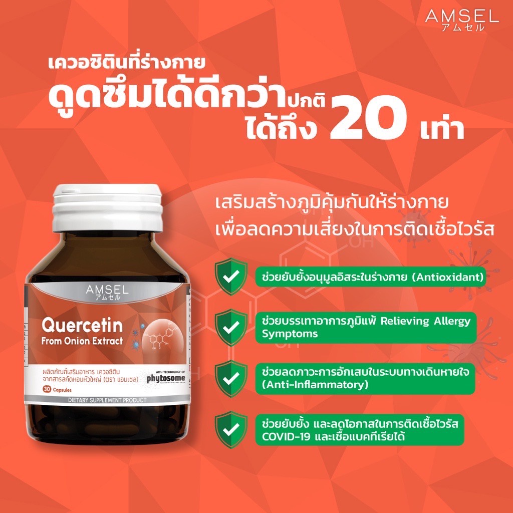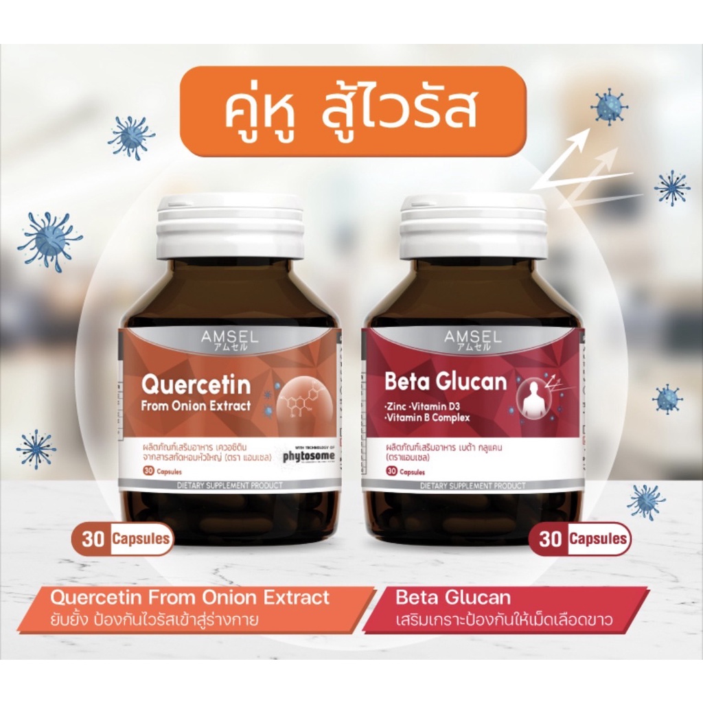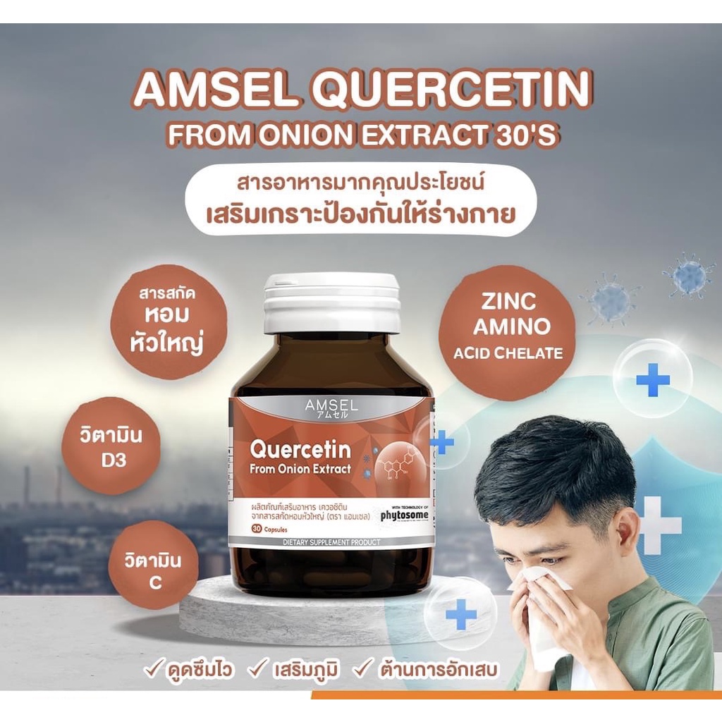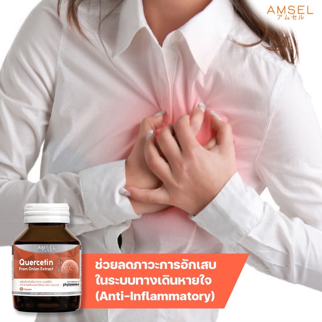 ((ของแท้ร้านยา))Amsel Quercetin แอมเซล เควอซิติน ช่วยยังยั้งป้องกันไวรัสเข้าสู่ร่างกาย 30 แคปซูล